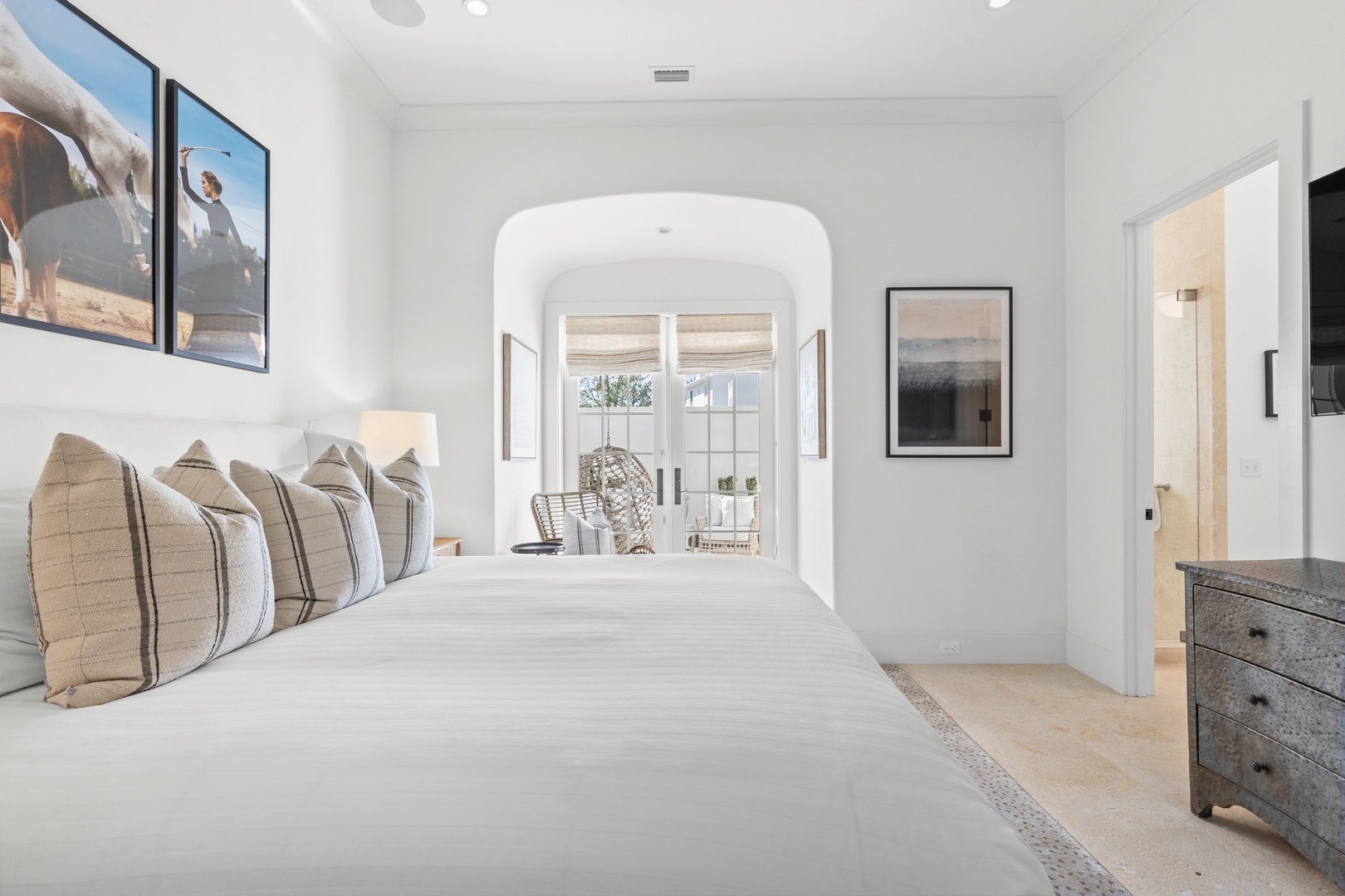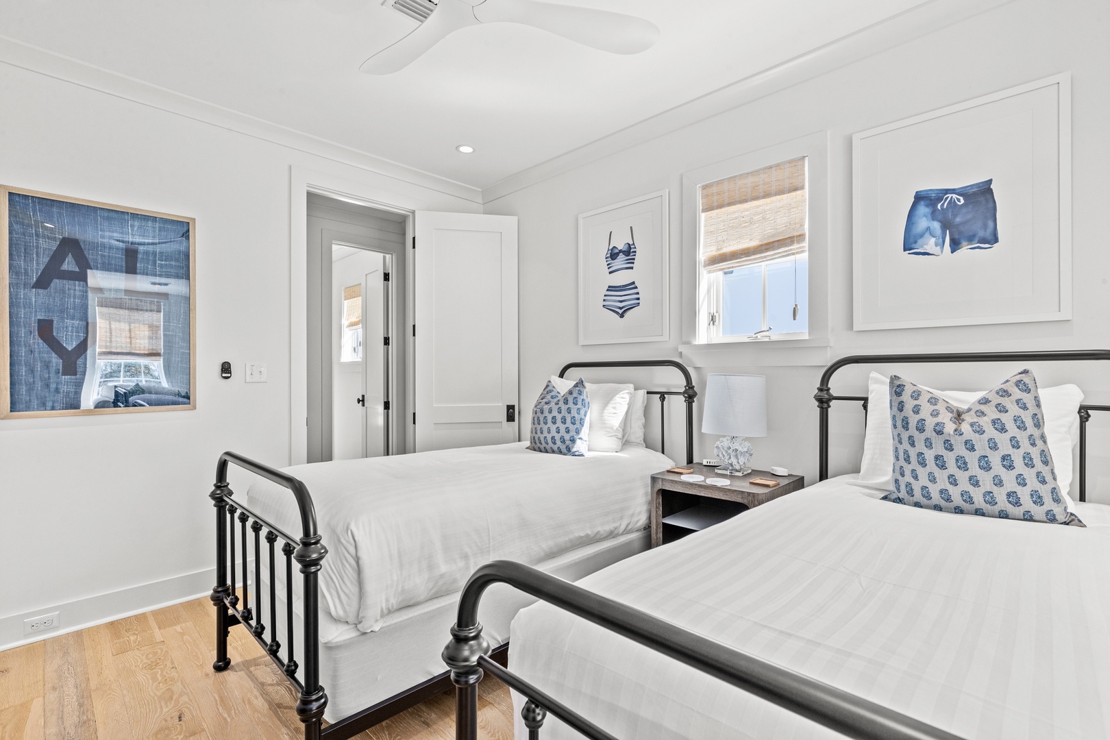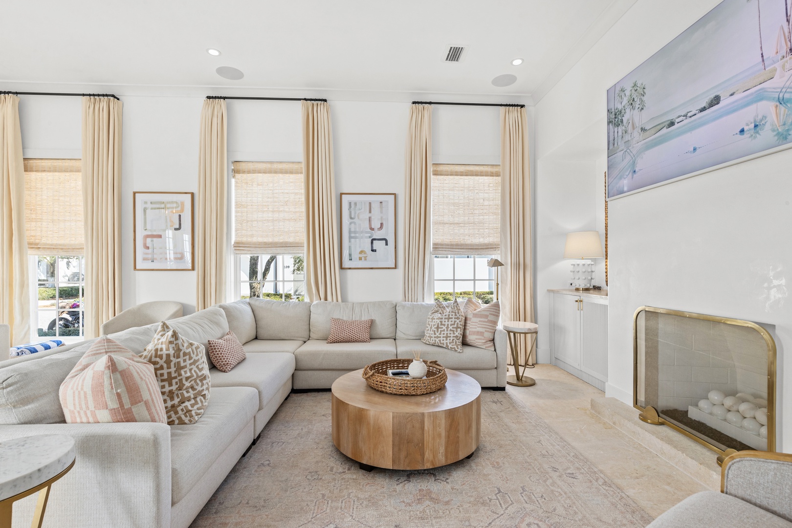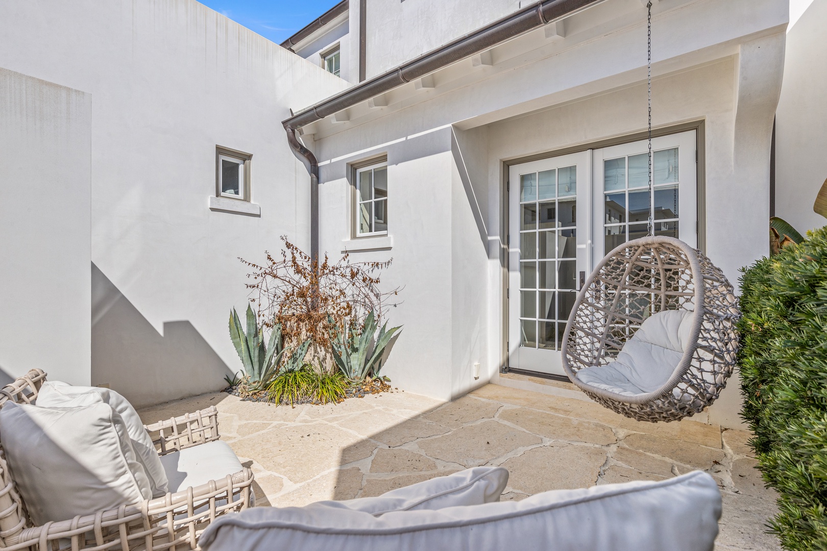 This vacation rental at Alys Beach is perfectly located between the Caliza Pool Complex and the ZUMA Wellness Center and is also a short walk to the emerging Town Center. This home features a private pool in the courtyard and covered outdoor seating with an outdoor television. The first floor offers a spacious great room with ample seating, a dining area and a kitchen with a large center island. Also on the first level is a half-bath, the laundry area and a bedroom with one king-sized bed and private bath. The second level of the home offers a large primary suite with one king-sized bed. Two additional bedrooms, both with private baths are found on the second level, one with a king-sized bed and one with two twin beds. A comfortable TV den is also found on the second level. Parking for this home is located in a two-car garage connected to the home.