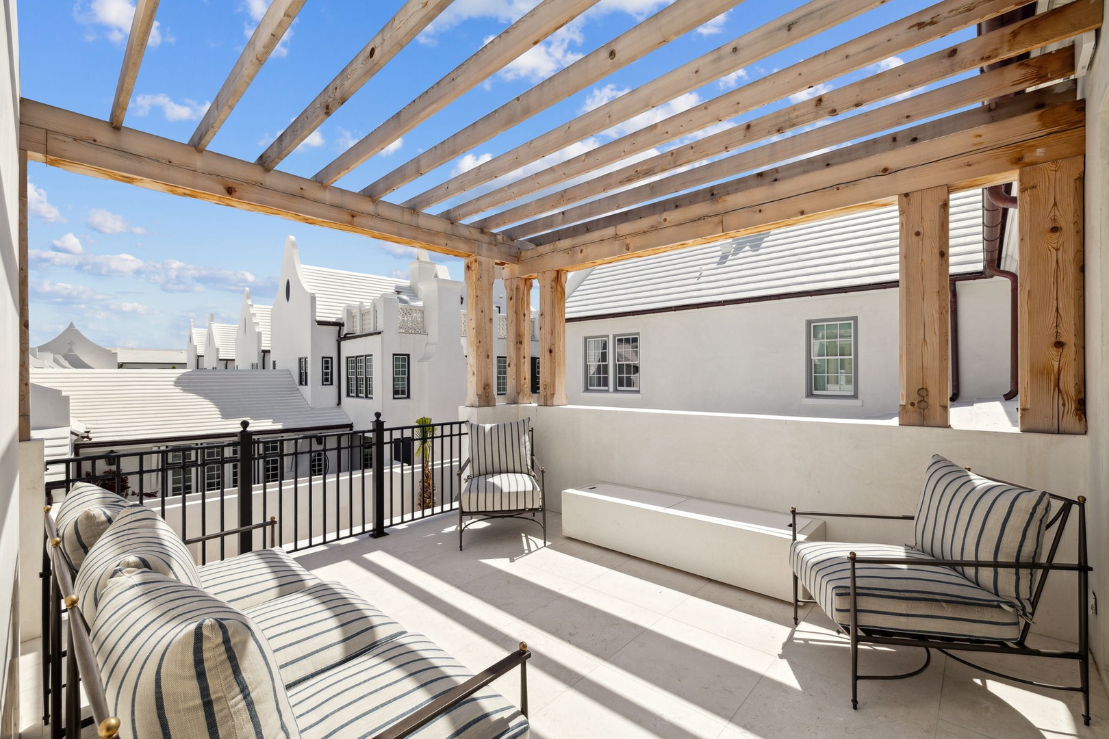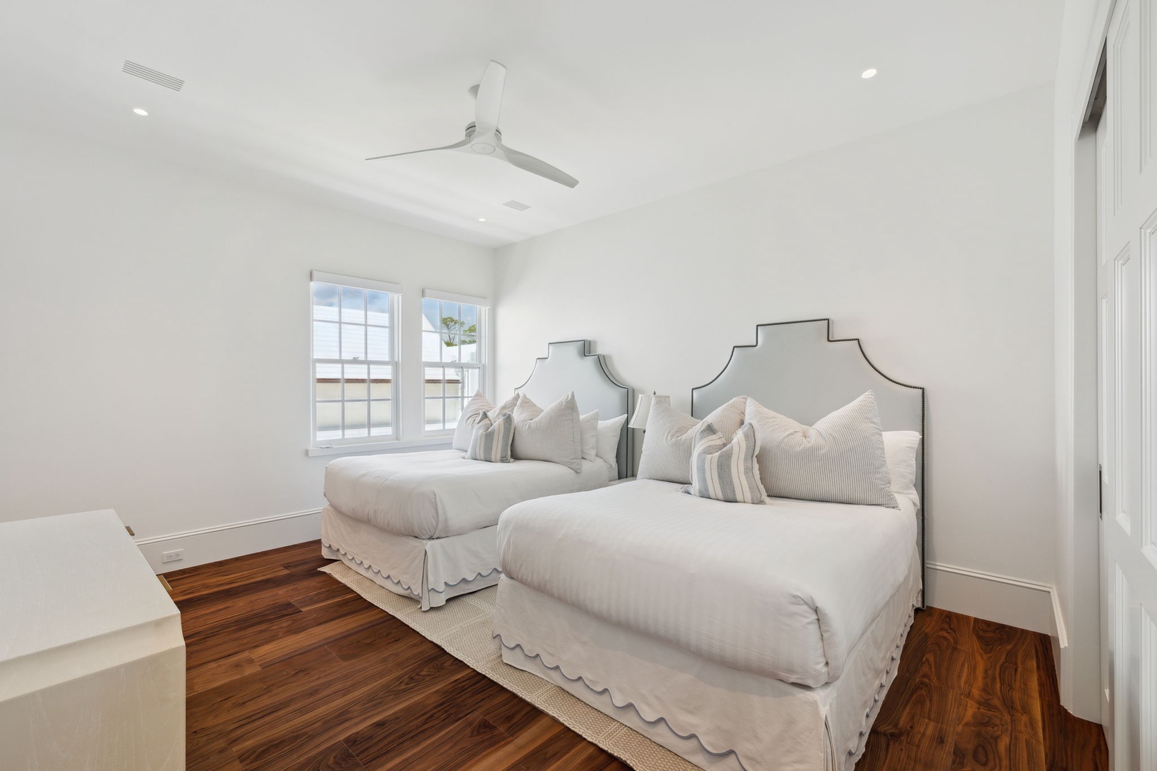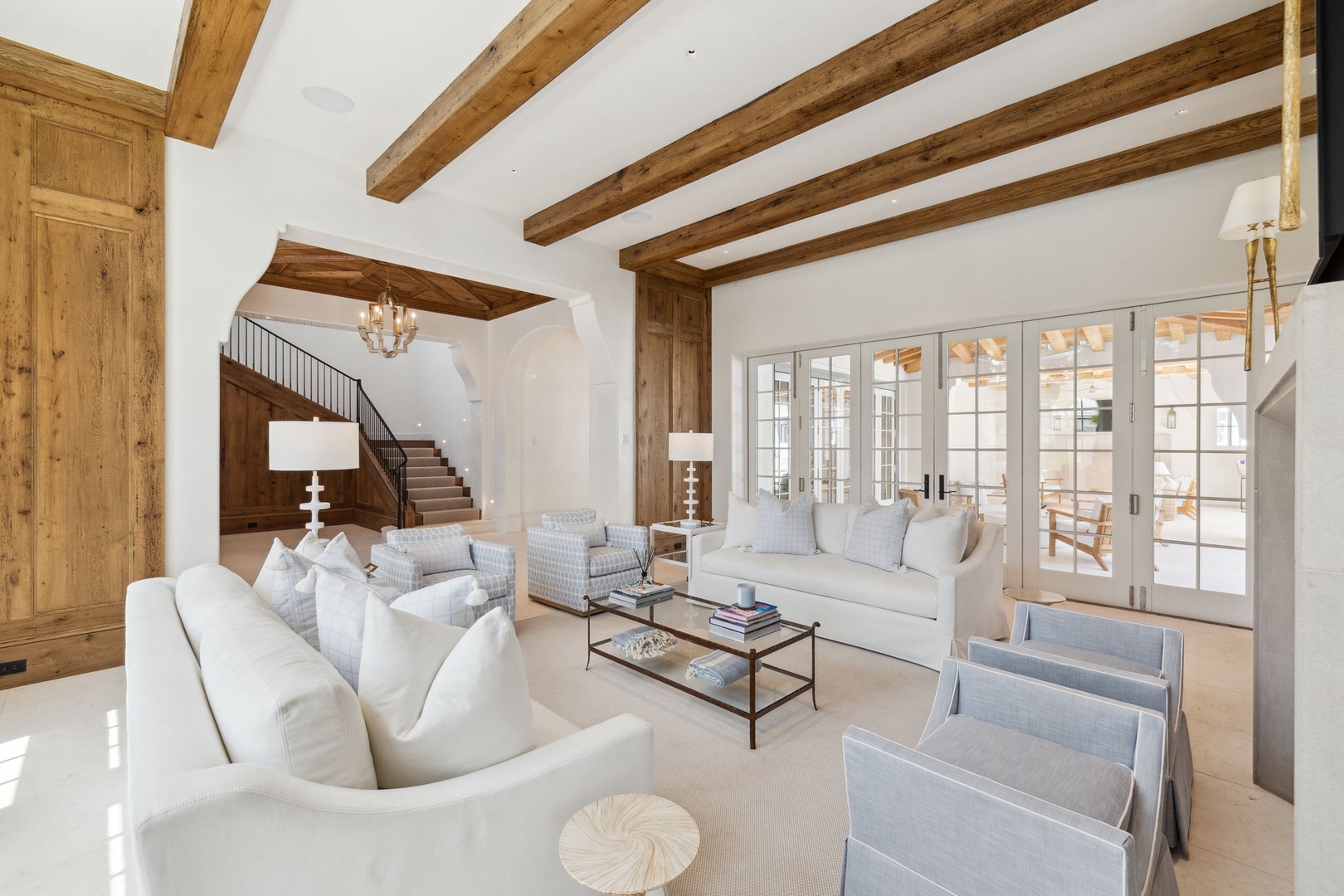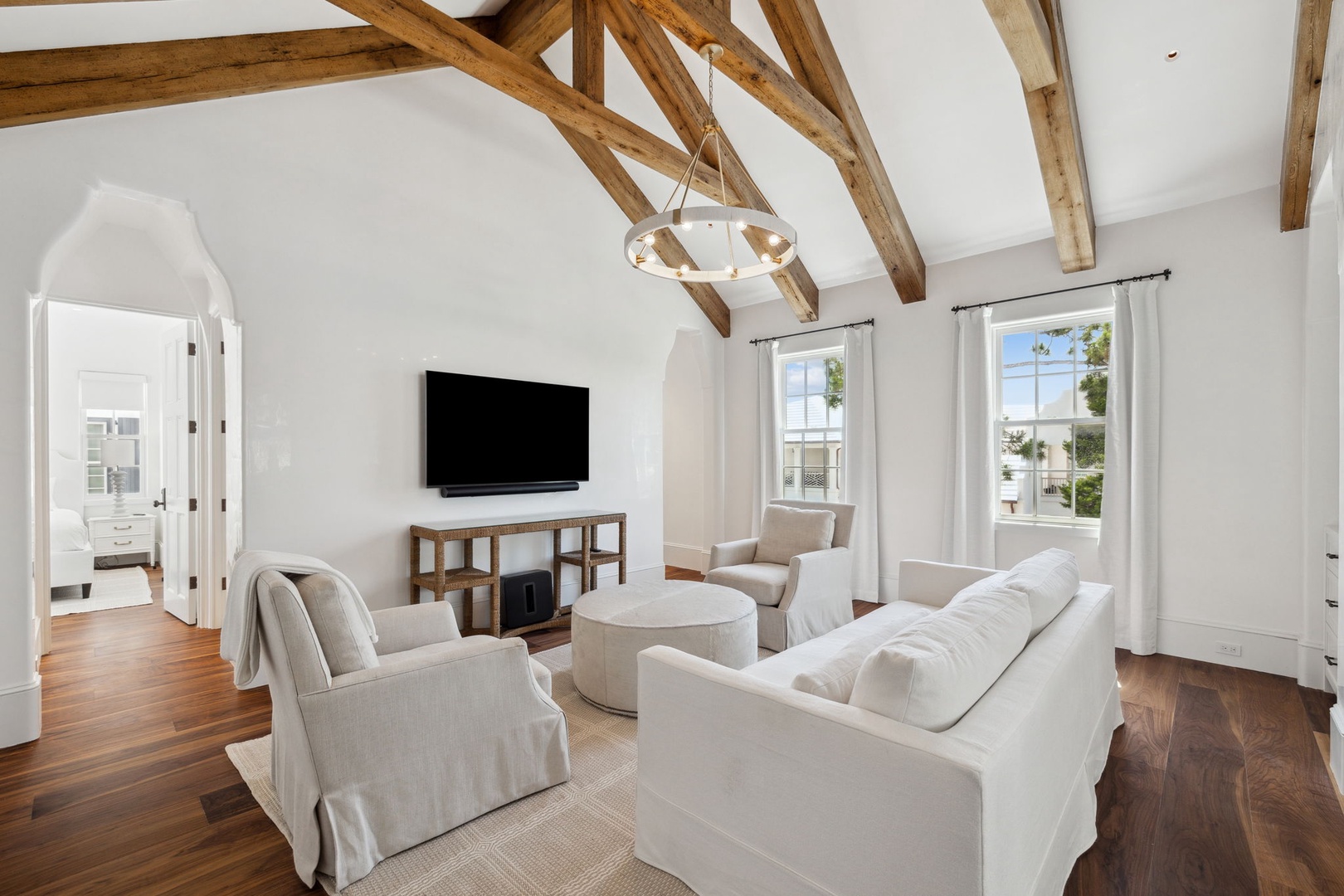 This brand-new vacation rental home was designed to accommodate two families, or a multi-generation visit with grandparents. Located in a quiet park setting on the North Turtle Bale pedestrian path, this home is a short stroll from the Caliza Pool Complex which is open to guests year-round. Offering five bedrooms all with private baths – two of which are master suites with spacious master baths - this grand and spacious home is the perfect fit for any party. Rarely does a vacation rental home offer so much outdoor space. The private pool is one of the largest of any home in Alys Beach. The courtyard offers ample outdoor and covered seating. An outdoor fireplace and television create the perfect place to enjoy many pleasant hours. Inside, the first floor features a large kitchen and dining area. The dining table offers seating for 8 with additional bar seating facing the kitchen. A large foyer leads to a tastefully decorated living room with lots of natural light looking over the pedestrian path and the home’s courtyard. A bedroom with one-king sized bed as well as a powder room are also found on this floor. Ascending the grand staircase, you will find a game table with four chairs at the top of the staircase as well as an additional TV den with a cathedral ceiling. Two bedrooms open from the den, each offering one king-sized bed. Down a separate hall, the fourth bedroom offers two queen-sized beds and the primary suite offers one king-sized bed and a private balcony with seating and a firepit. Parking for this home is in a two-car garage.