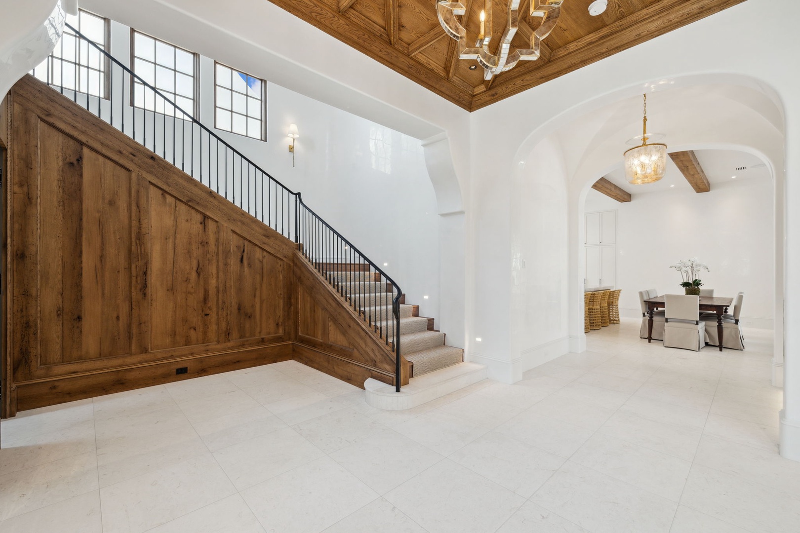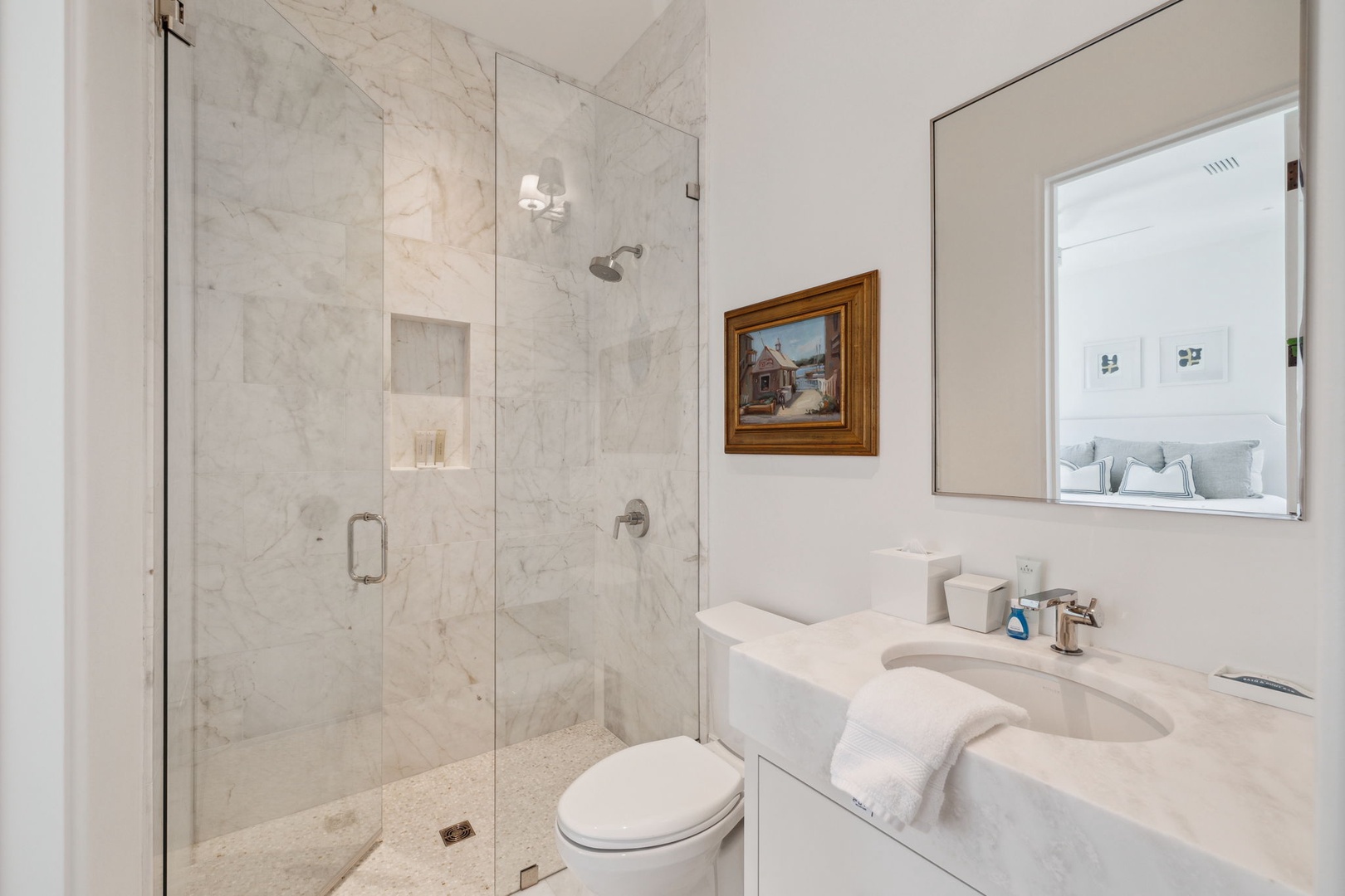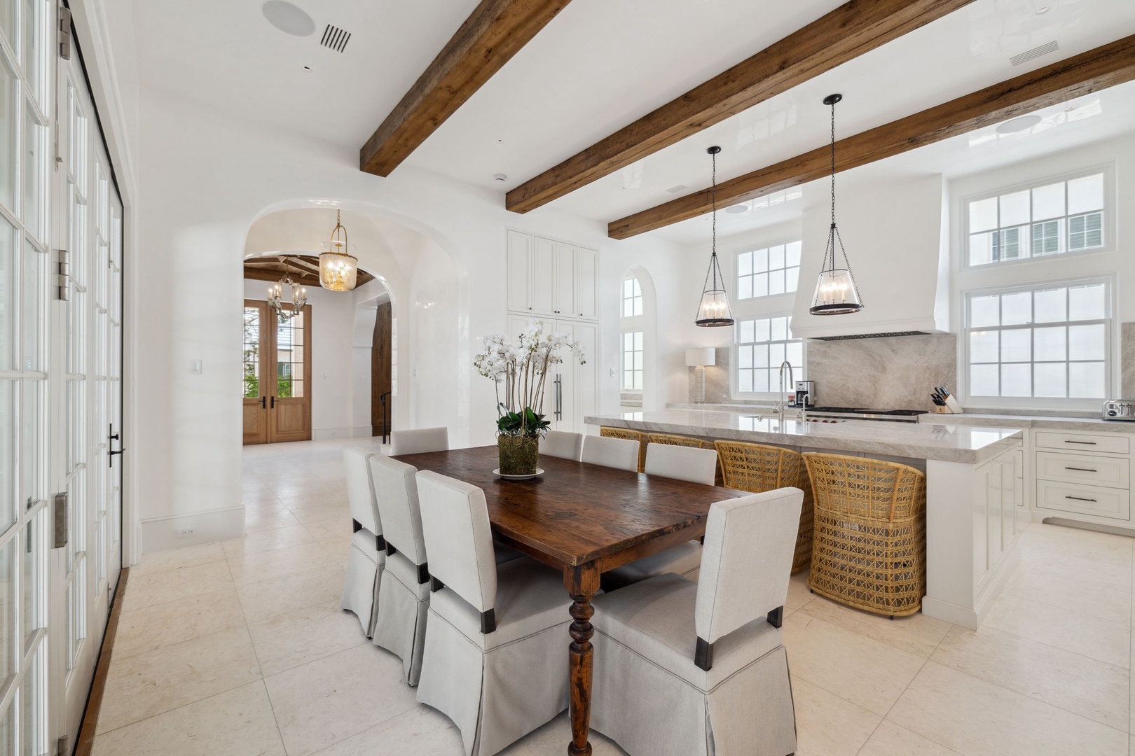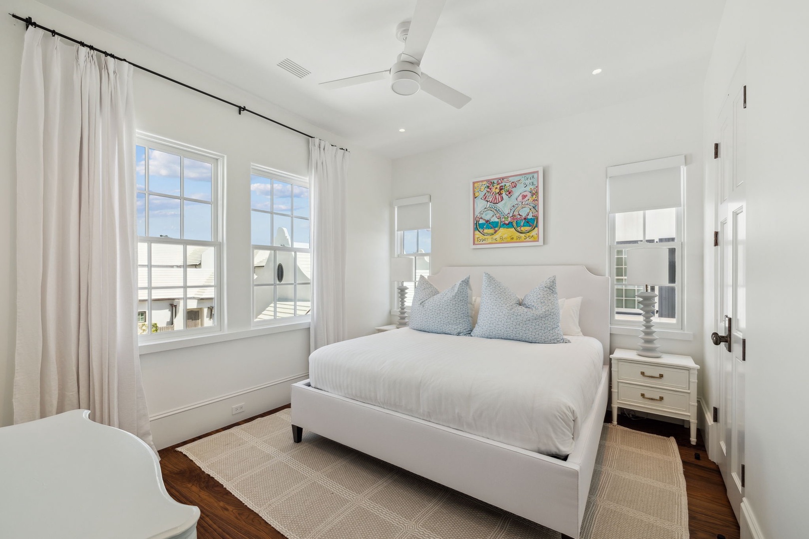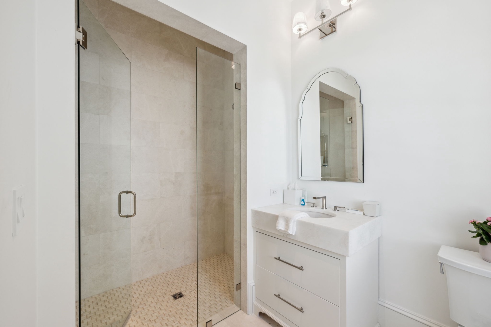 This brand-new vacation rental home was designed to accommodate two families, or a multi-generation visit with grandparents. Located in a quiet park setting on the North Turtle Bale pedestrian path, this home is a short stroll from the Caliza Pool Complex which is open to guests year-round. Offering five bedrooms all with private baths – two of which are master suites with spacious master baths - this grand and spacious home is the perfect fit for any party. Rarely does a vacation rental home offer so much outdoor space. The private pool is one of the largest of any home in Alys Beach. The courtyard offers ample outdoor and covered seating. An outdoor fireplace and television create the perfect place to enjoy many pleasant hours. Inside, the first floor features a large kitchen and dining area. The dining table offers seating for 8 with additional bar seating facing the kitchen. A large foyer leads to a tastefully decorated living room with lots of natural light looking over the pedestrian path and the home’s courtyard. A bedroom with one-king sized bed as well as a powder room are also found on this floor. Ascending the grand staircase, you will find a game table with four chairs at the top of the staircase as well as an additional TV den with a cathedral ceiling. Two bedrooms open from the den, each offering one king-sized bed. Down a separate hall, the fourth bedroom offers two queen-sized beds and the primary suite offers one king-sized bed and a private balcony with seating and a firepit. Parking for this home is in a two-car garage.