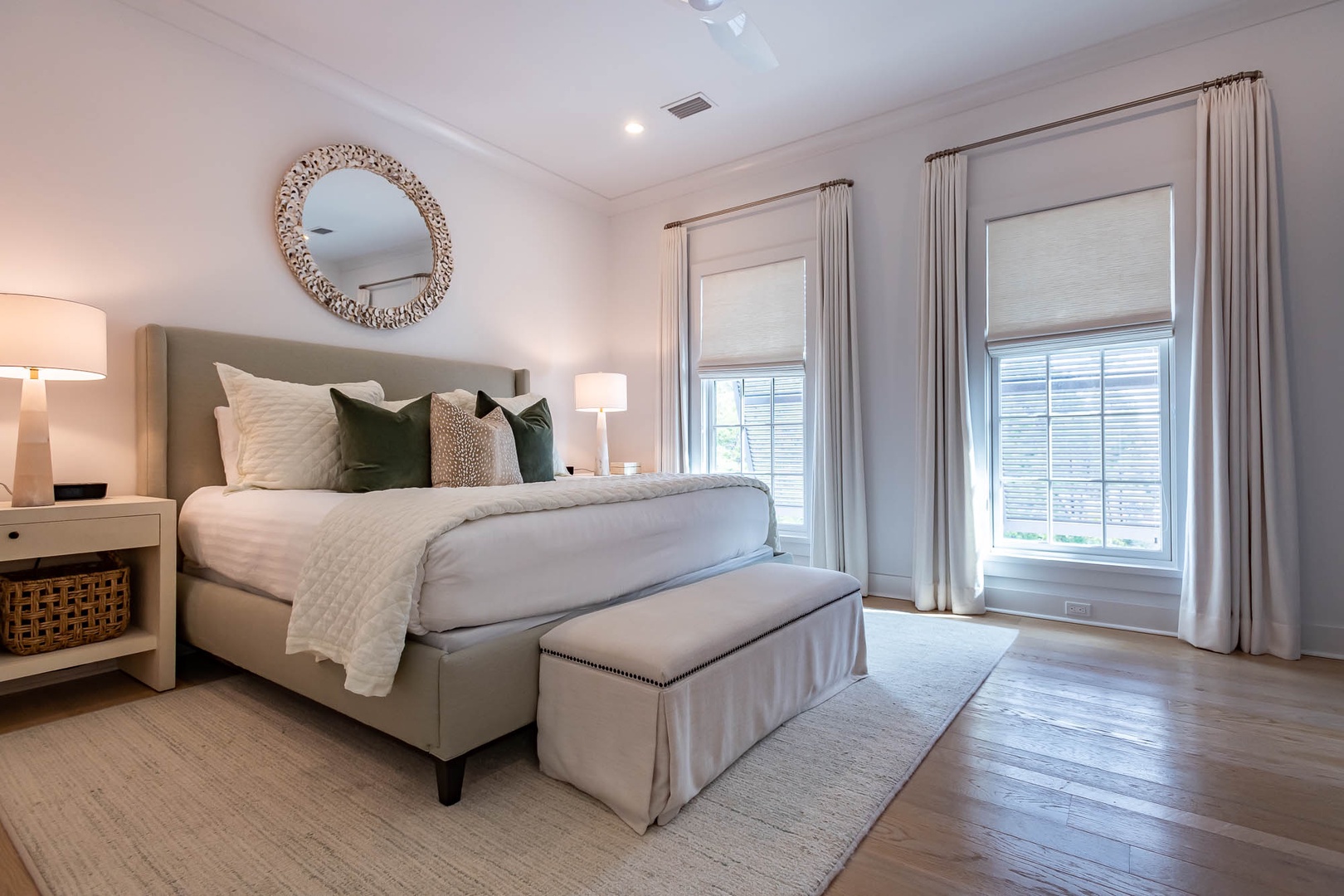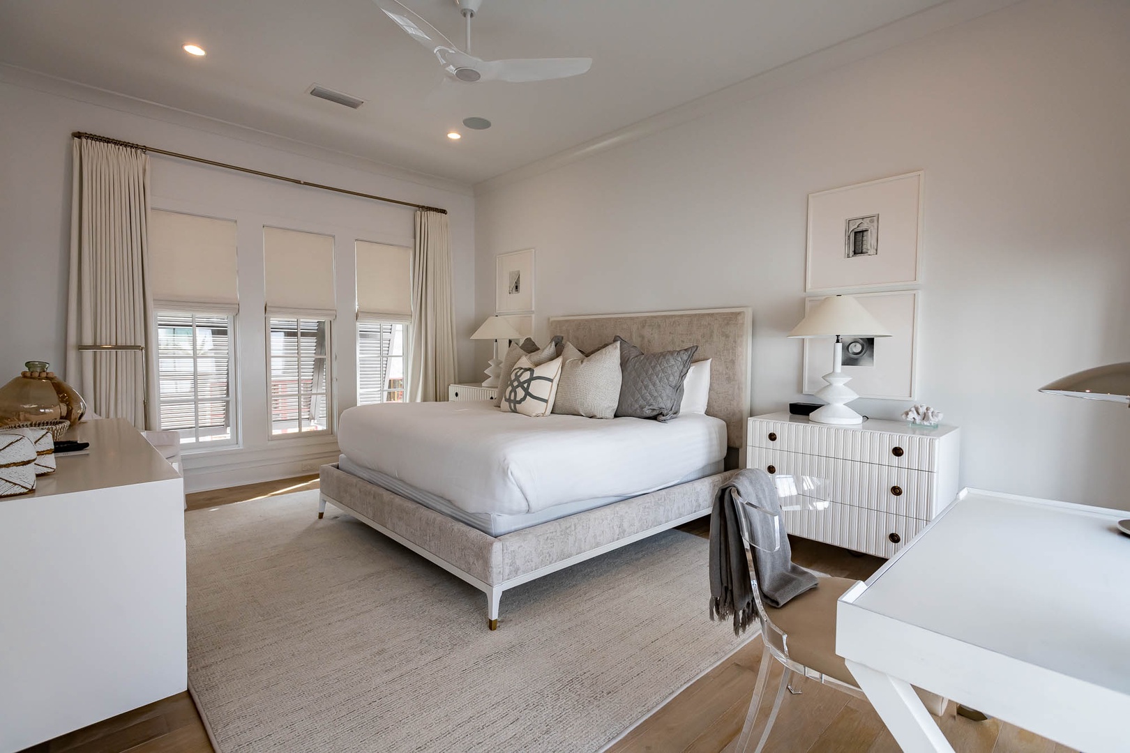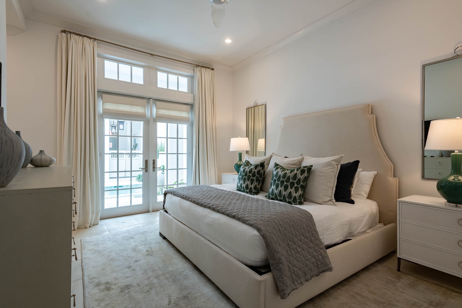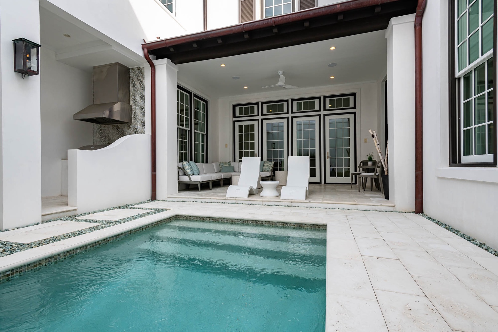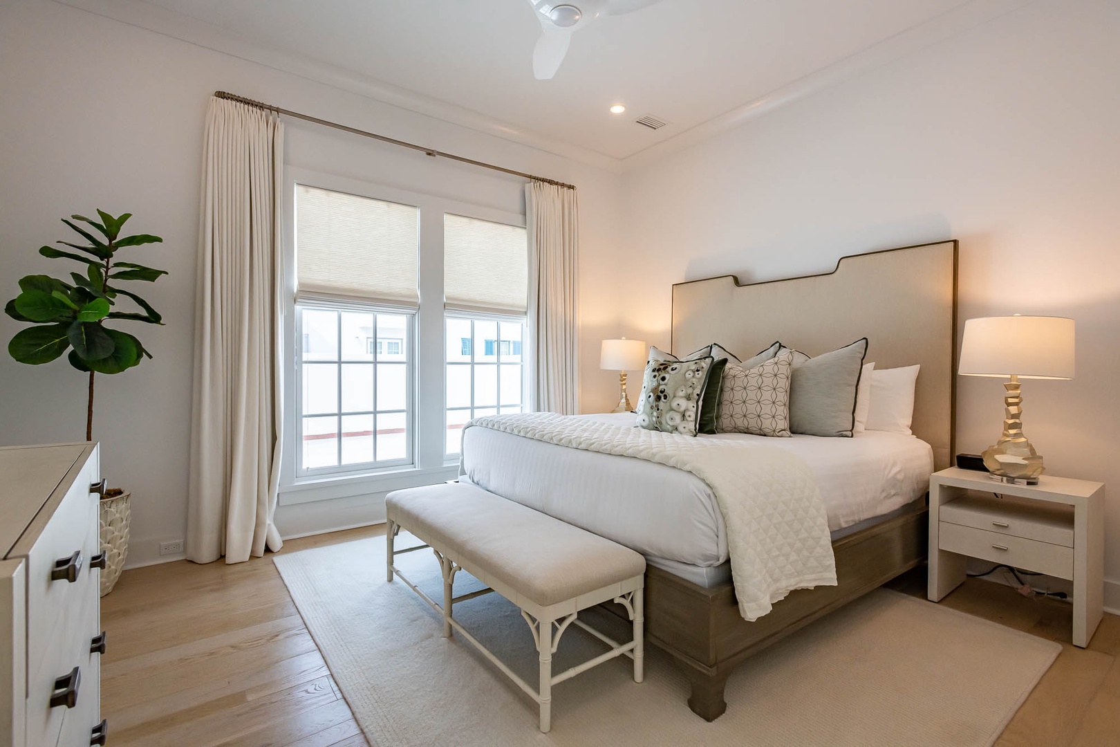 This beautiful home on North Charles Street has never before been on the rental program since completion in 2020. The home is a short distance to the emerging Town Center, the Caliza Pool complex as well as the Gulf. The home provides very inviting outdoor space on the first level including a courtyard with private pool, shaded seating and a built-in grill. Inside, guests will enjoy a bedroom with a king-sized bed and private bath as well as a spacious, open family room and kitchen with a large center island. On the second floor, there are three bedrooms and three full baths including the master suite, each with one king-sized bed. An extra room with one set of bunk beds as well as well as the laundry room are also found on this level. Finally, a spacious patio on the second floor provides additional outdoor seating to enjoy Gulf breezes. Parking for this home is located in a two-car garage.