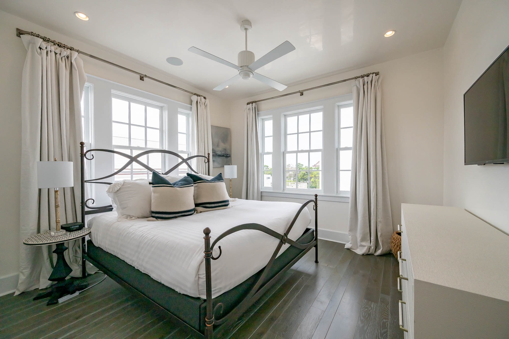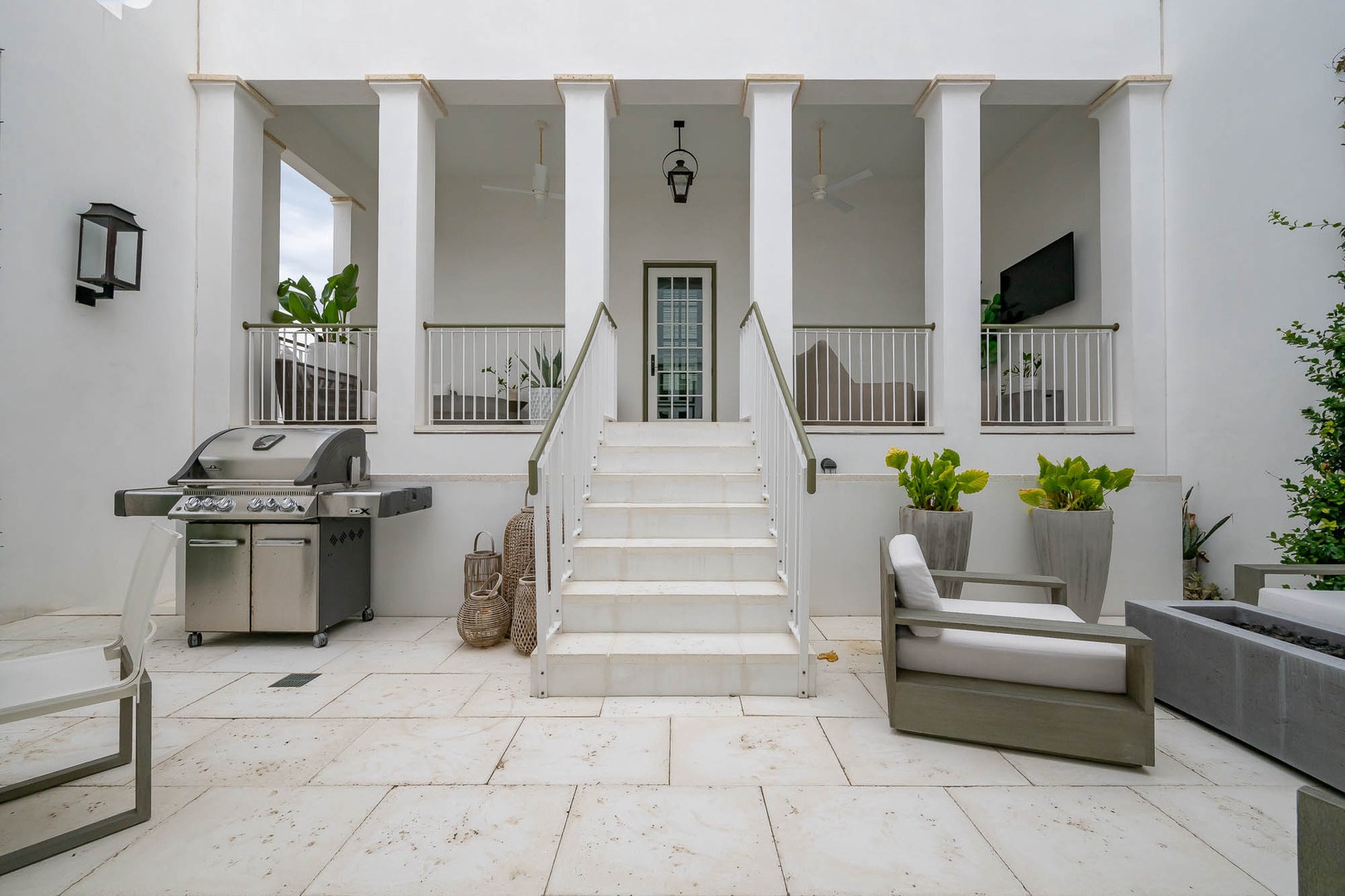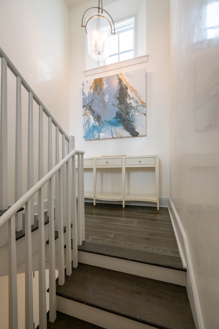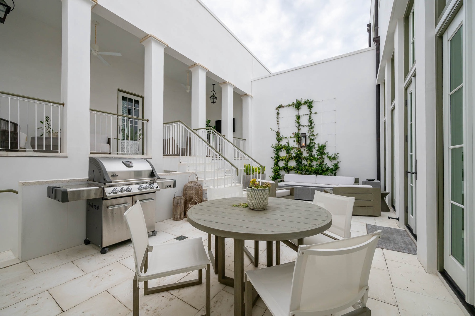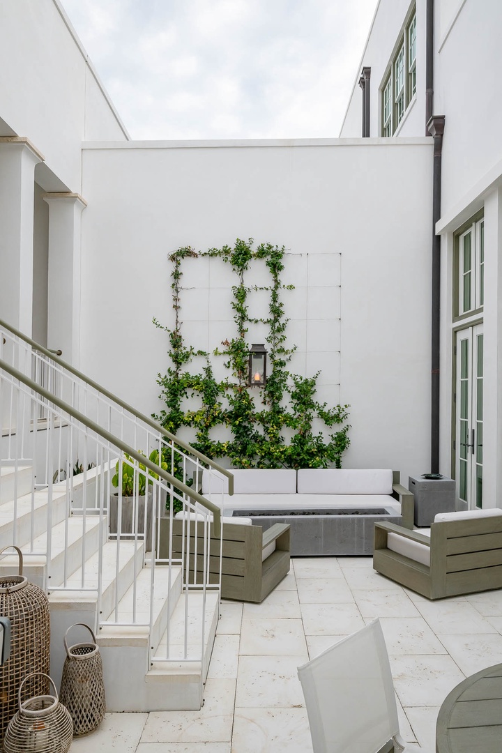 This newly added vacation rental home is located just steps away from ZUMA. The main home offers a first-floor primary bedroom with one king-sized bed including a stackable washer and dryer. The first floor also offers an open concept dining and living room area adjacent to the kitchen. On the second floor you will find two additional bedrooms each with one king-sized bed and en suite bathrooms. There is an additional washer and dryer on this level as well. This home also features a private courtyard with open seating as well as a covered veranda with additional seating and an outdoor TV. The fourth bedroom with one king-sized bed resides in the carriage house above the 2-car garage.