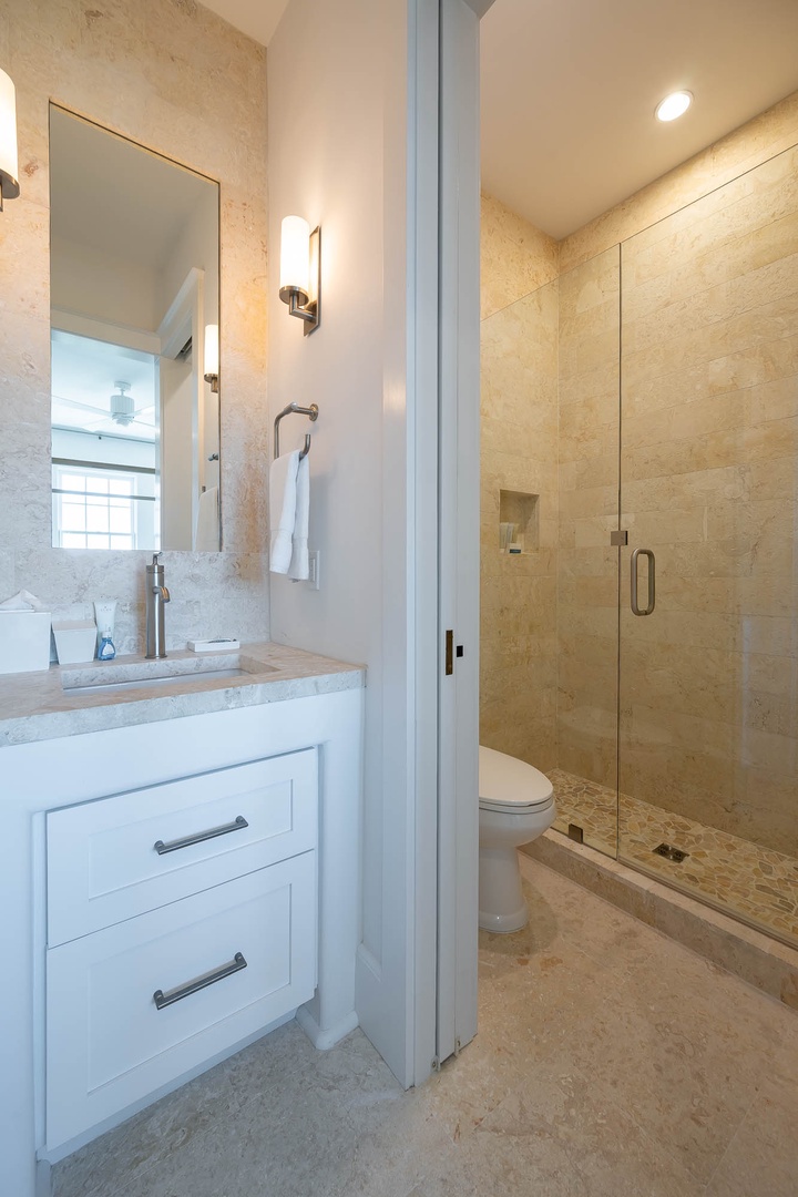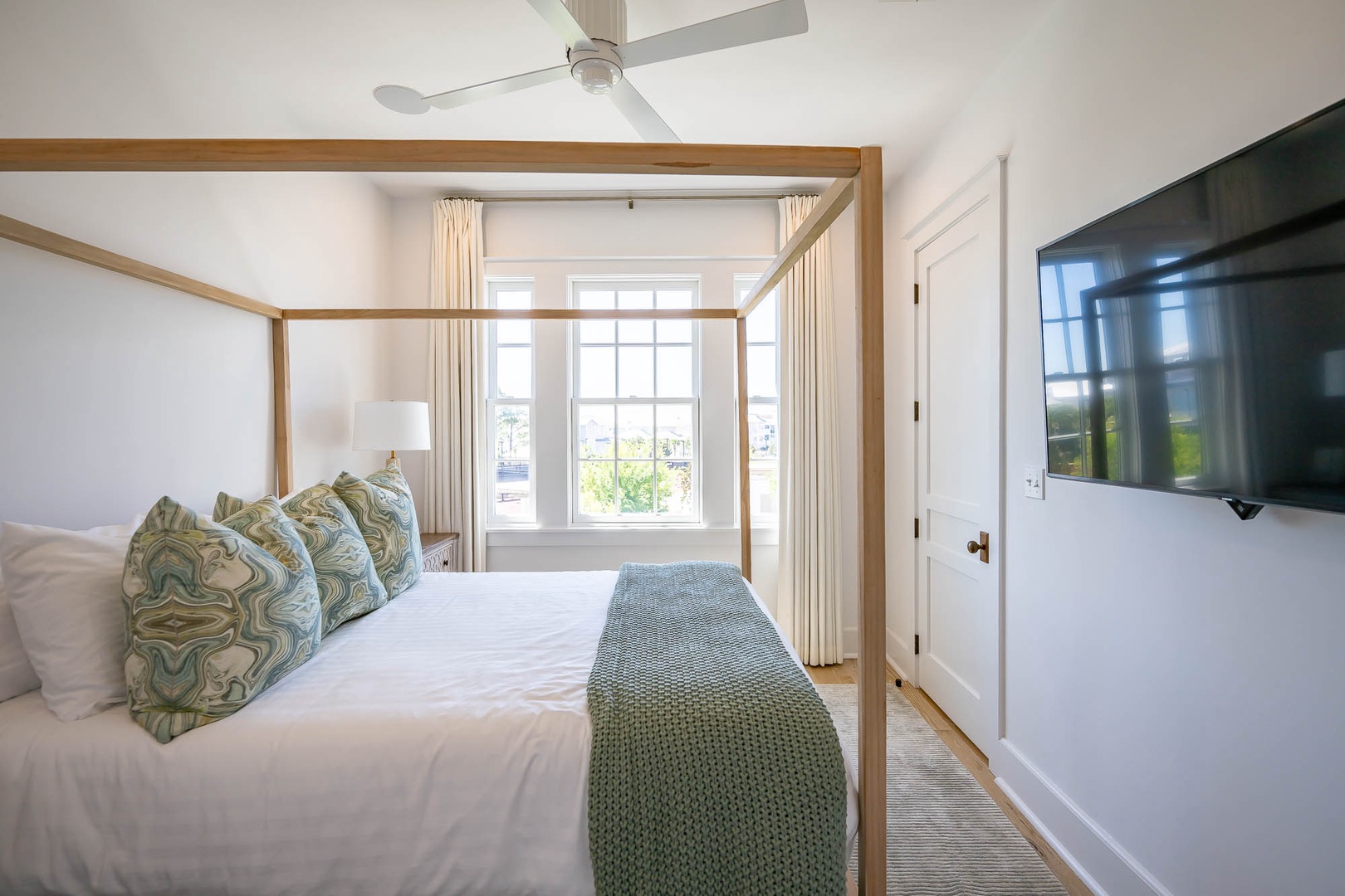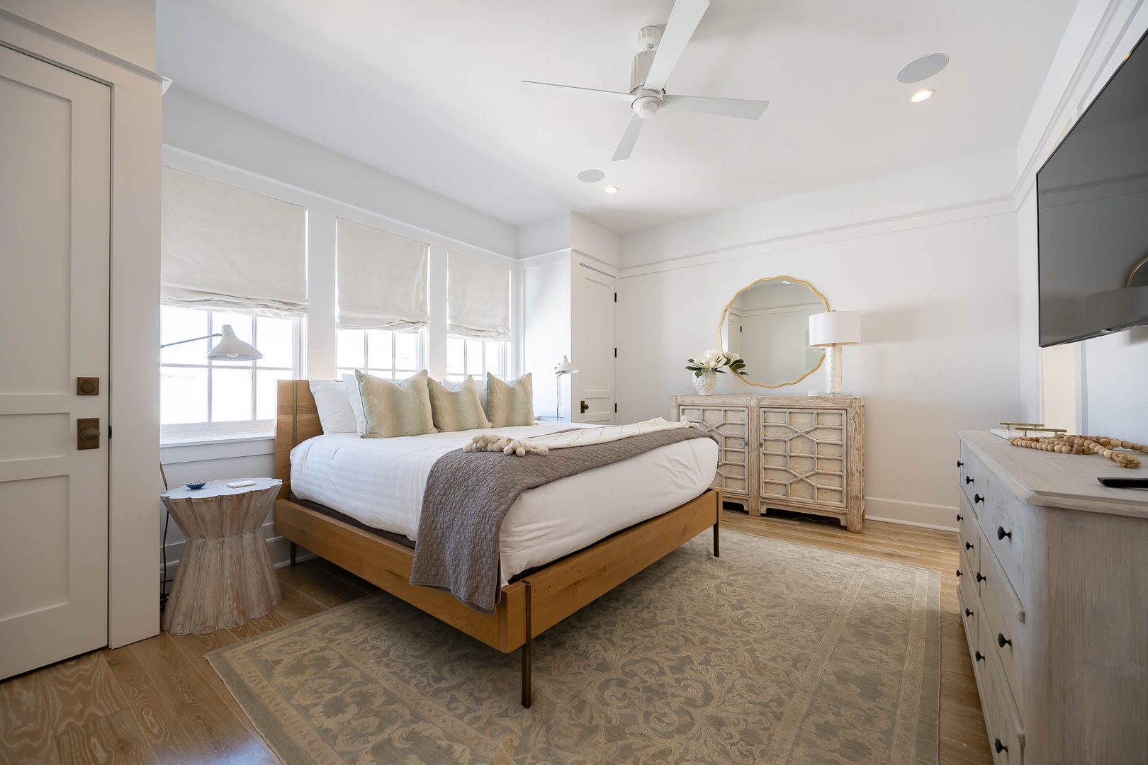 This lovely vacation rental home is ideally situated adjacent to ZUMA Wellness Center. The Caliza pool complex as well as Town Center are just a short walk away. Guests will find the spacious family room, dining area and kitchen located on the main level. A bedroom with a queen-sized bed and private bath as well as the primary suite with a king-sized bed and private bath is found up the main stairs. The third bedroom with a king-sized bed and private bath is detached from the main house and found across the private courtyard. Parking for this home is in a one-car garage and a designated space across from the home.