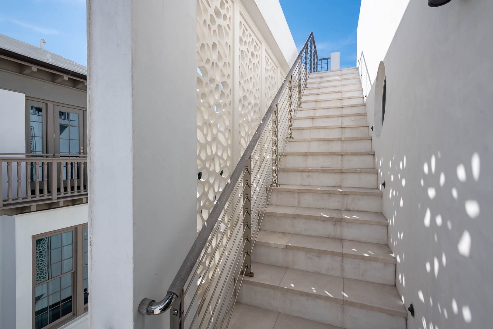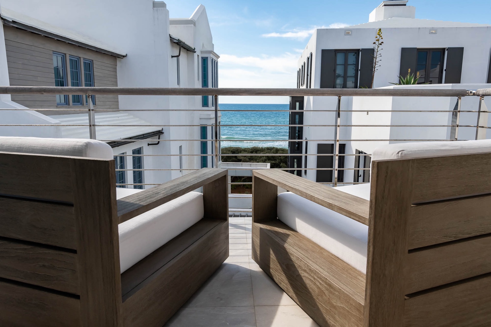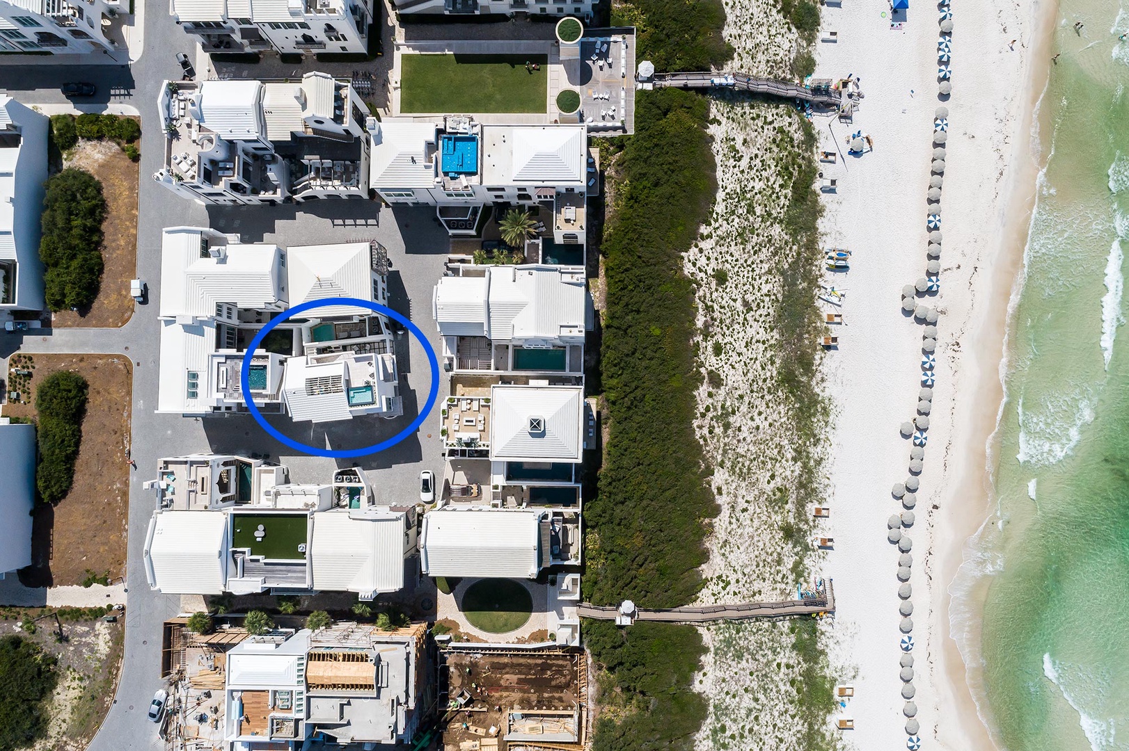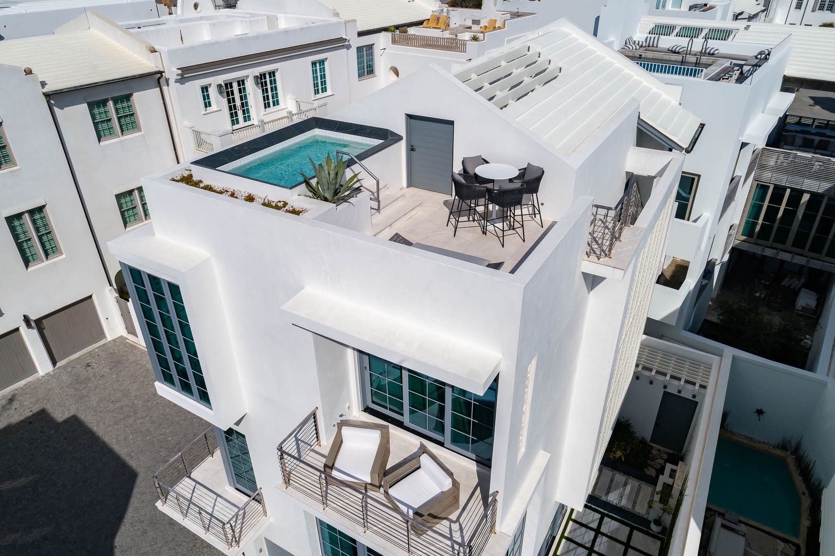 This brand-new Alys Beach Vacation Rental Home is truly unique and beautiful. Located second-row to the Gulf, the careful placement of the first-row homes guarantees water views from several rooms. The home features a one-car garage on the first level, the laundry room and the first bedroom with king-sized bed and private bath. This bedroom overlooks a private courtyard which also doubles as the second parking space if needed. The second level of the home offers a spacious great room with views of the Gulf, ample seating, a dining area as well as a spacious kitchen with large center island. The third level offers the primary suite with a king-sized bed and private balcony as well as the third bedroom with a queen-sized bed and private bath. An additional half-bath is also found on this level. Finally, on the fourth level, guests will find a roof-top patio with seating and a private pool with incredible views of the rooftops of Alys Beach and the Gulf. Parking for this home is in a one-vehicle garage as well as one designated open space next to the home.