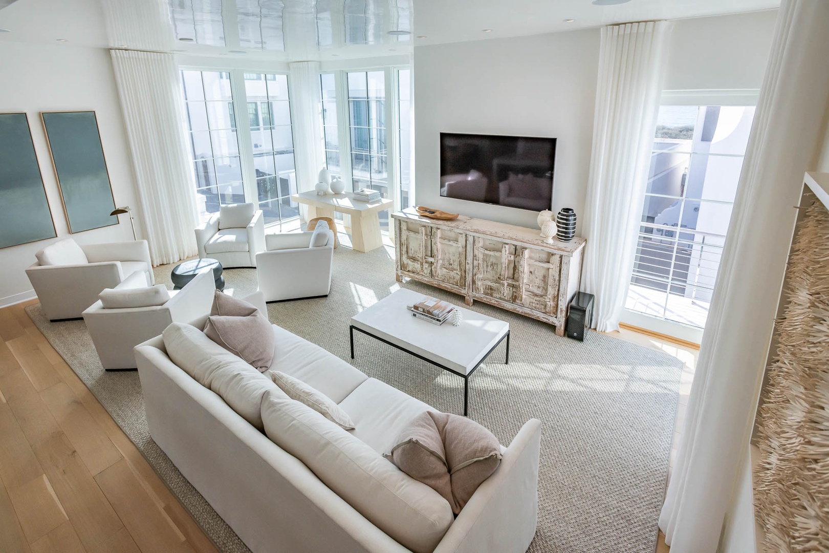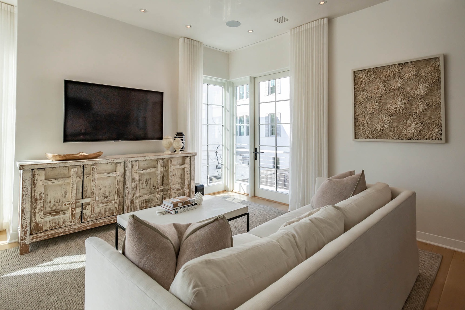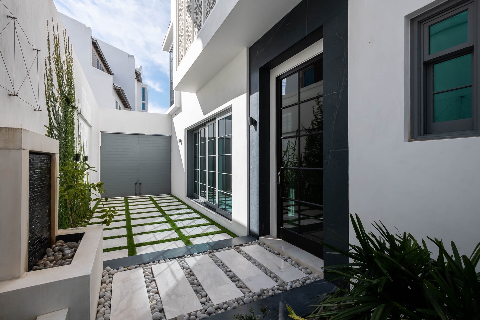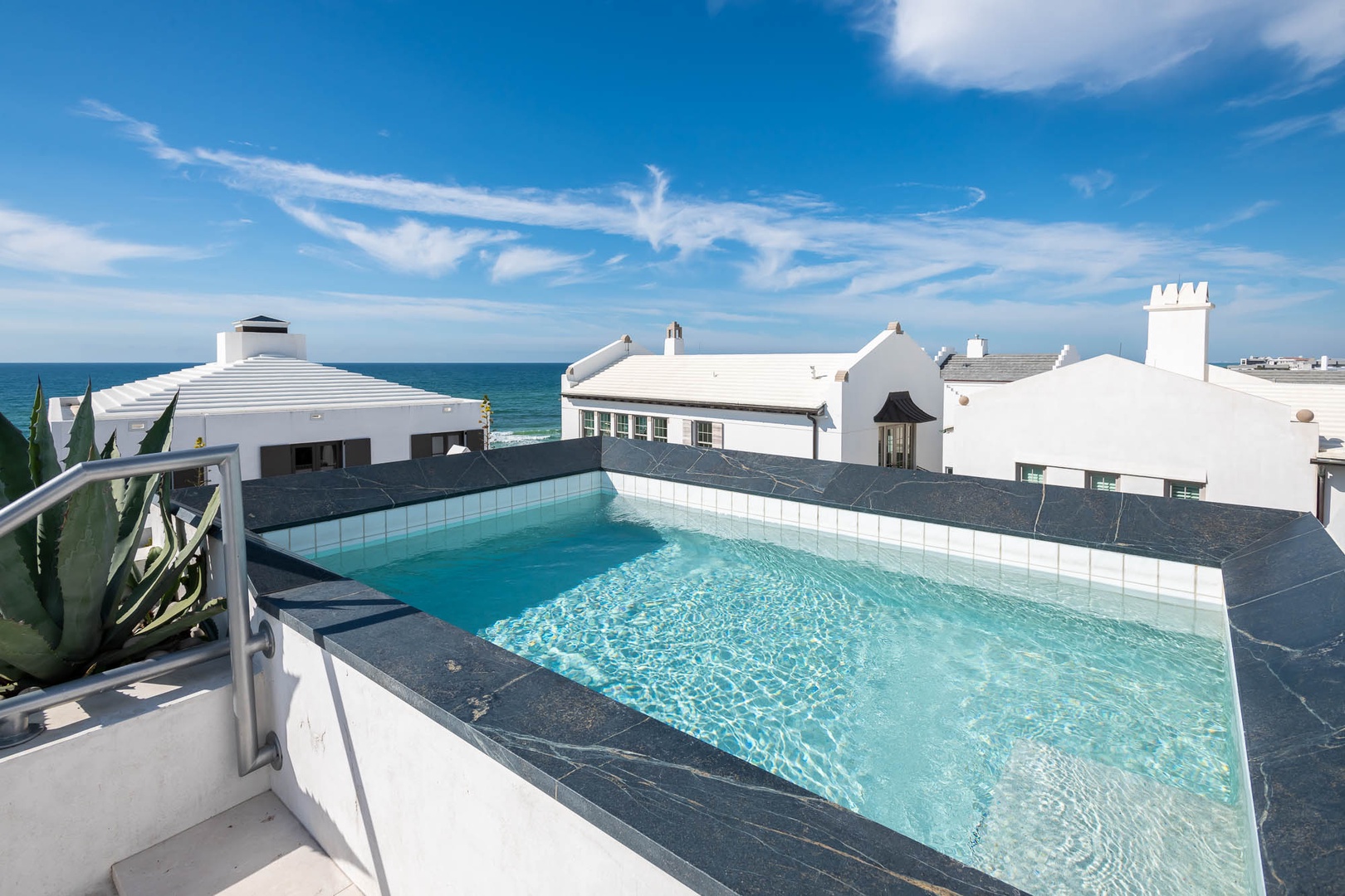 This brand-new Alys Beach Vacation Rental Home is truly unique and beautiful. Located second-row to the Gulf, the careful placement of the first-row homes guarantees water views from several rooms. The home features a one-car garage on the first level, the laundry room and the first bedroom with king-sized bed and private bath. This bedroom overlooks a private courtyard which also doubles as the second parking space if needed. The second level of the home offers a spacious great room with views of the Gulf, ample seating, a dining area as well as a spacious kitchen with large center island. The third level offers the primary suite with a king-sized bed and private balcony as well as the third bedroom with a queen-sized bed and private bath. An additional half-bath is also found on this level. Finally, on the fourth level, guests will find a roof-top patio with seating and a private pool with incredible views of the rooftops of Alys Beach and the Gulf. Parking for this home is in a one-vehicle garage as well as one designated open space next to the home.