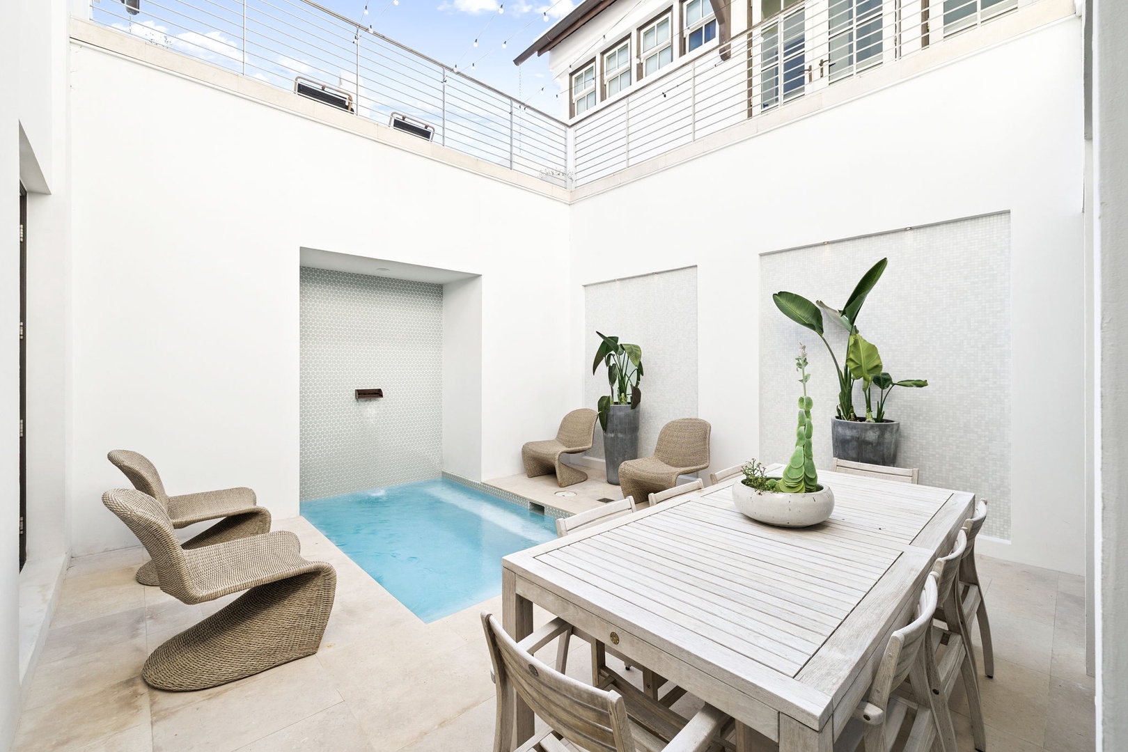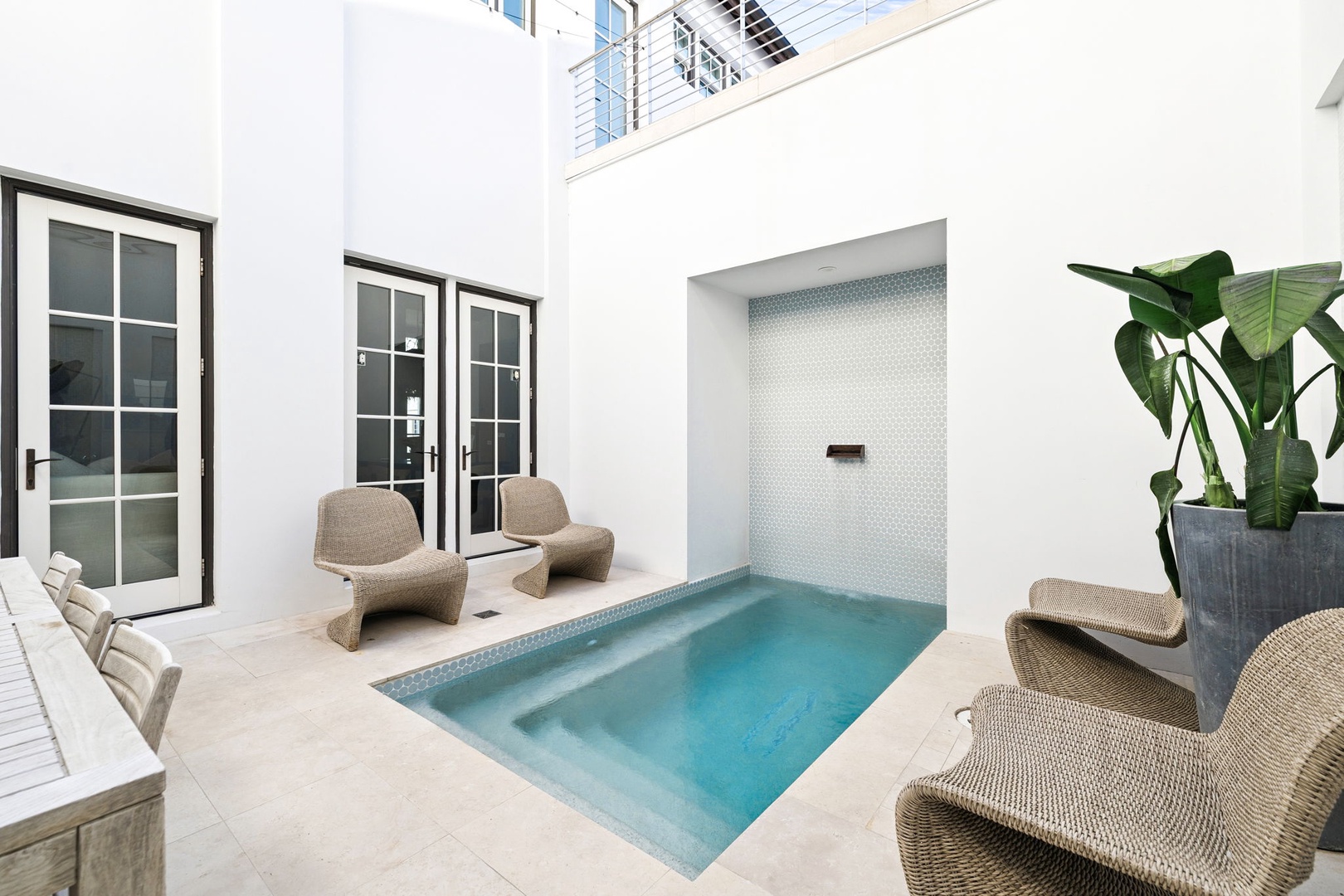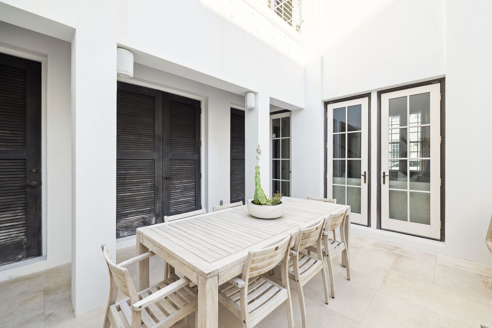 This recently refurbished home at Alys Beach is the perfect location to enjoy Caliza and ZUMA Wellness Center. It is a short walk to the emerging town center as well as the Gulf. The first floor features a private courtyard with pool, a spacious great room with ample seating, large center island in the kitchen and a king-sized bedroom with private bath. The second floor of the main house offers the primary suite with king-sized bed and another bedroom with two twin beds and private bath. The fourth bedroom is found on the second level detached from the main house and offers a king-sized bed and private bath. Finally, a spacious 2nd floor patio offers additional outdoor seating. Parking for this home is located in a two-car garage.