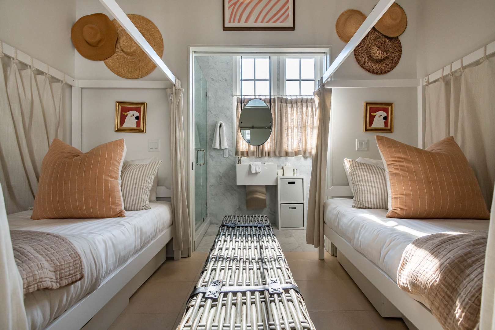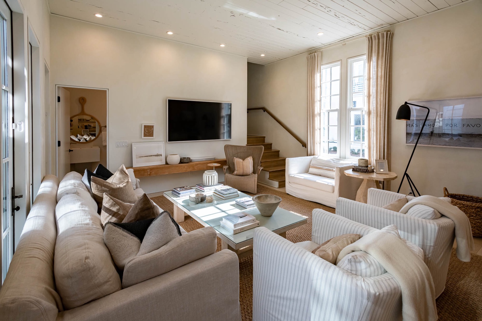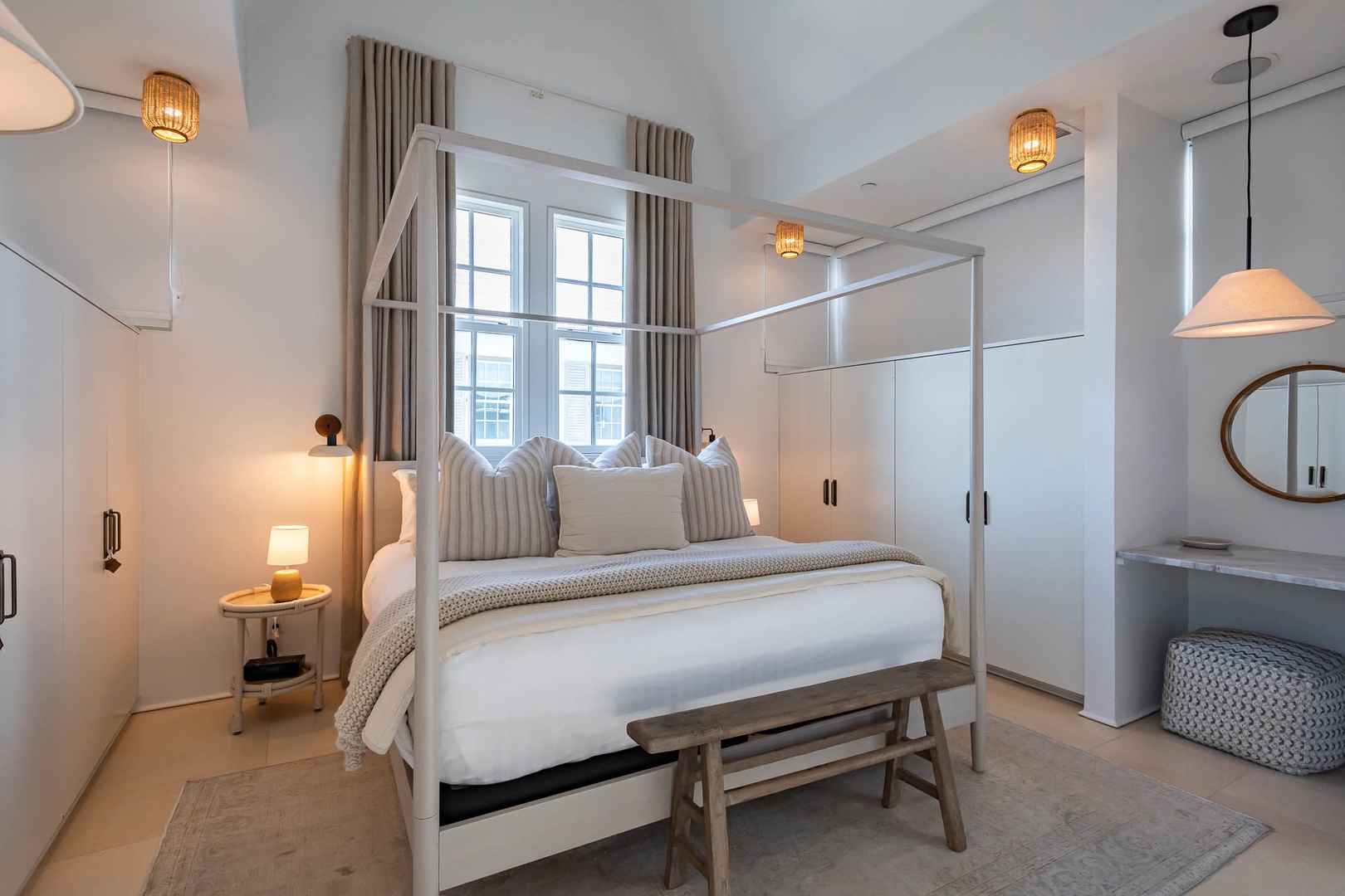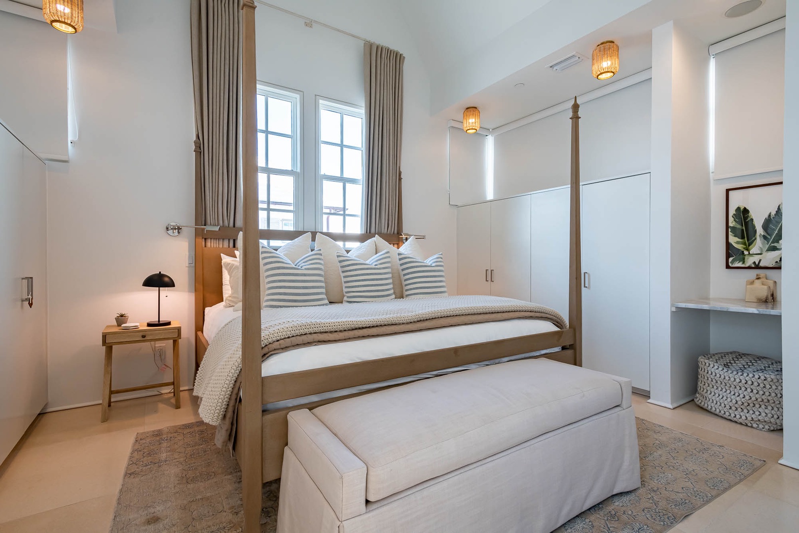 This recently refurbished home at Alys Beach is the perfect location to enjoy Caliza and ZUMA Wellness Center. It is a short walk to the emerging town center as well as the Gulf. The first floor features a private courtyard with pool, a spacious great room with ample seating, large center island in the kitchen and a king-sized bedroom with private bath. The second floor of the main house offers the primary suite with king-sized bed and another bedroom with two twin beds and private bath. The fourth bedroom is found on the second level detached from the main house and offers a king-sized bed and private bath. Finally, a spacious 2nd floor patio offers additional outdoor seating. Parking for this home is located in a two-car garage.