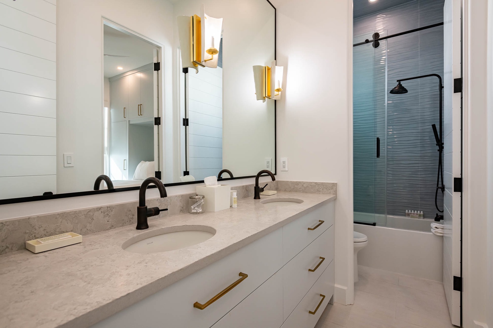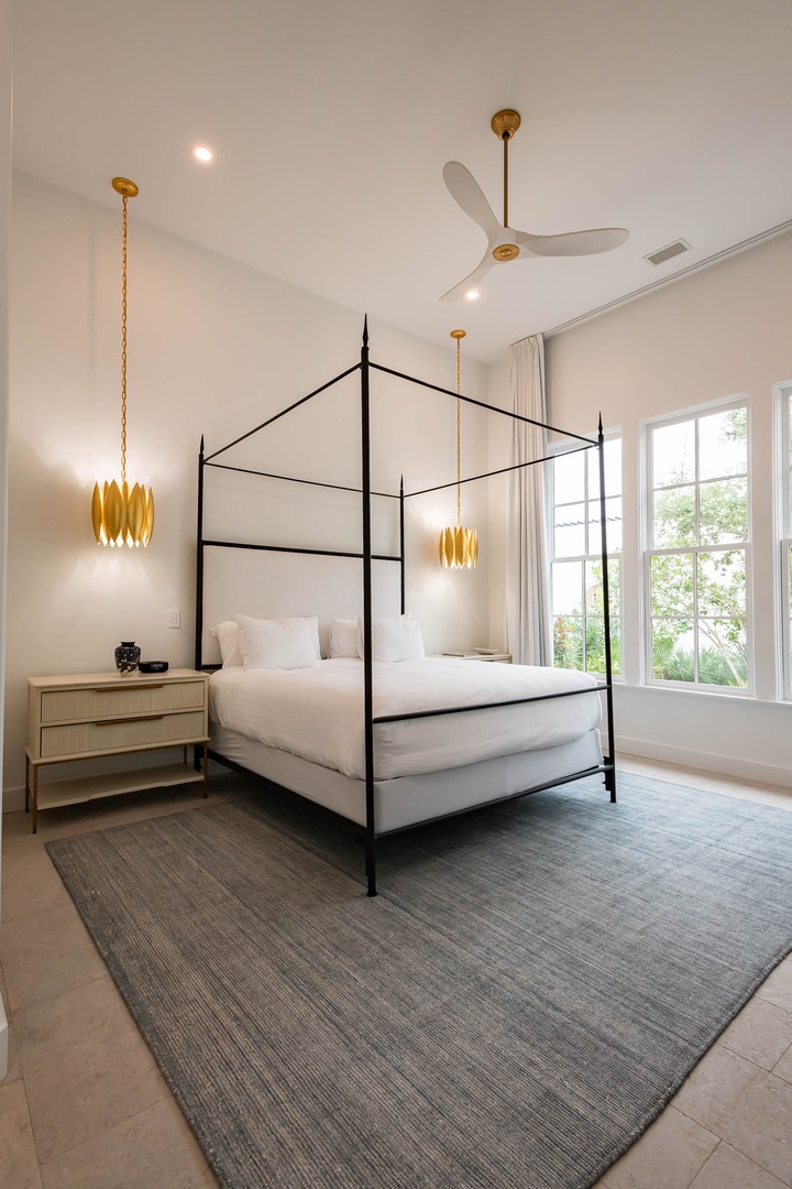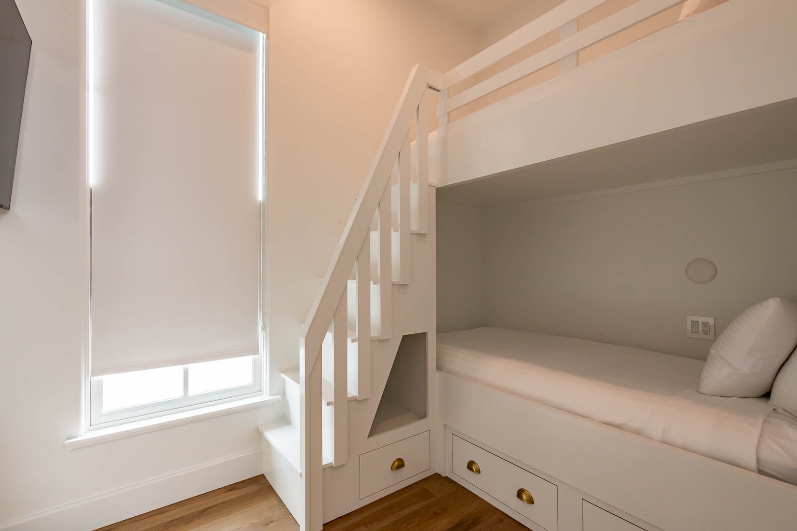 Vacation rental guests will enjoy this beautiful and newly constructed 3-bedroom home located directly next to the Caliza pool complex. The first level features a large and private courtyard with ample seating, built-in grill and an amazing outdoor fire pit. Also on this level guests will find the laundry room, kitchen with a large center island and butler’s pantry as well as a spacious family room with a glass-enclosed fireplace and dining area with plenty of natural light. The spacious primary suite with private outdoor shower is also located on the first level. Moving to the second floor, guests will find two bedrooms, each with one queen-sized bed and private bath. A separate bunk room with one upper and one lower bed completes the second level. Parking for this home is located in a two-car attached garage.