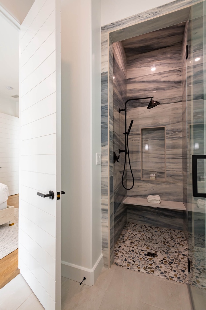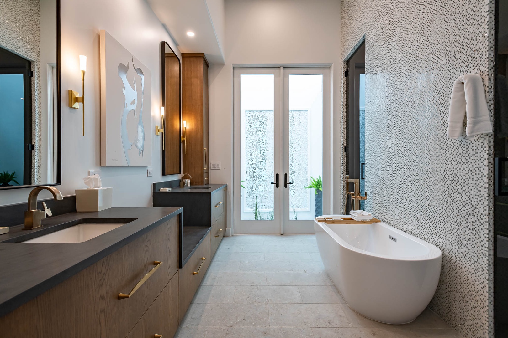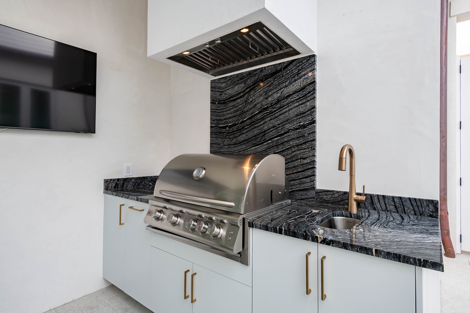Vacation rental guests will enjoy this beautiful and newly constructed 3-bedroom home located directly next to the Caliza pool complex. The first level features a large and private courtyard with ample seating, built-in grill and an amazing outdoor fire pit. Also on this level guests will find the laundry room, kitchen with a large center island and butler’s pantry as well as a spacious family room with a glass-enclosed fireplace and dining area with plenty of natural light. The spacious primary suite with private outdoor shower is also located on the first level. Moving to the second floor, guests will find two bedrooms, each with one queen-sized bed and private bath. A separate bunk room with one upper and one lower bed completes the second level. Parking for this home is located in a two-car attached garage.