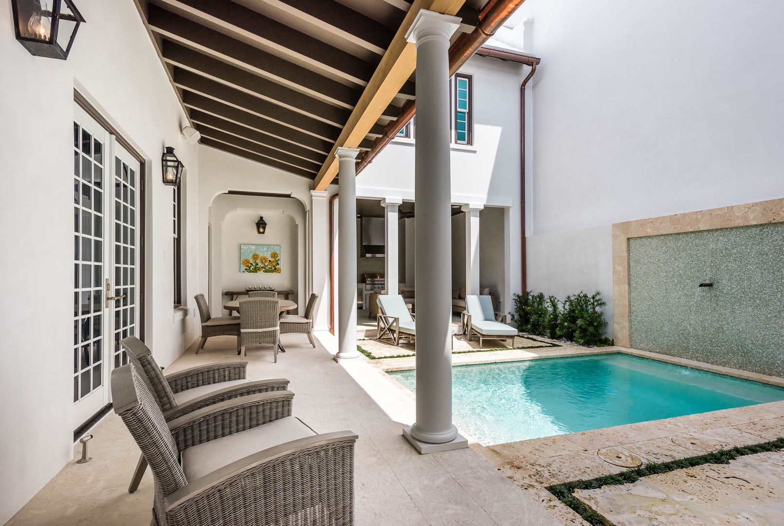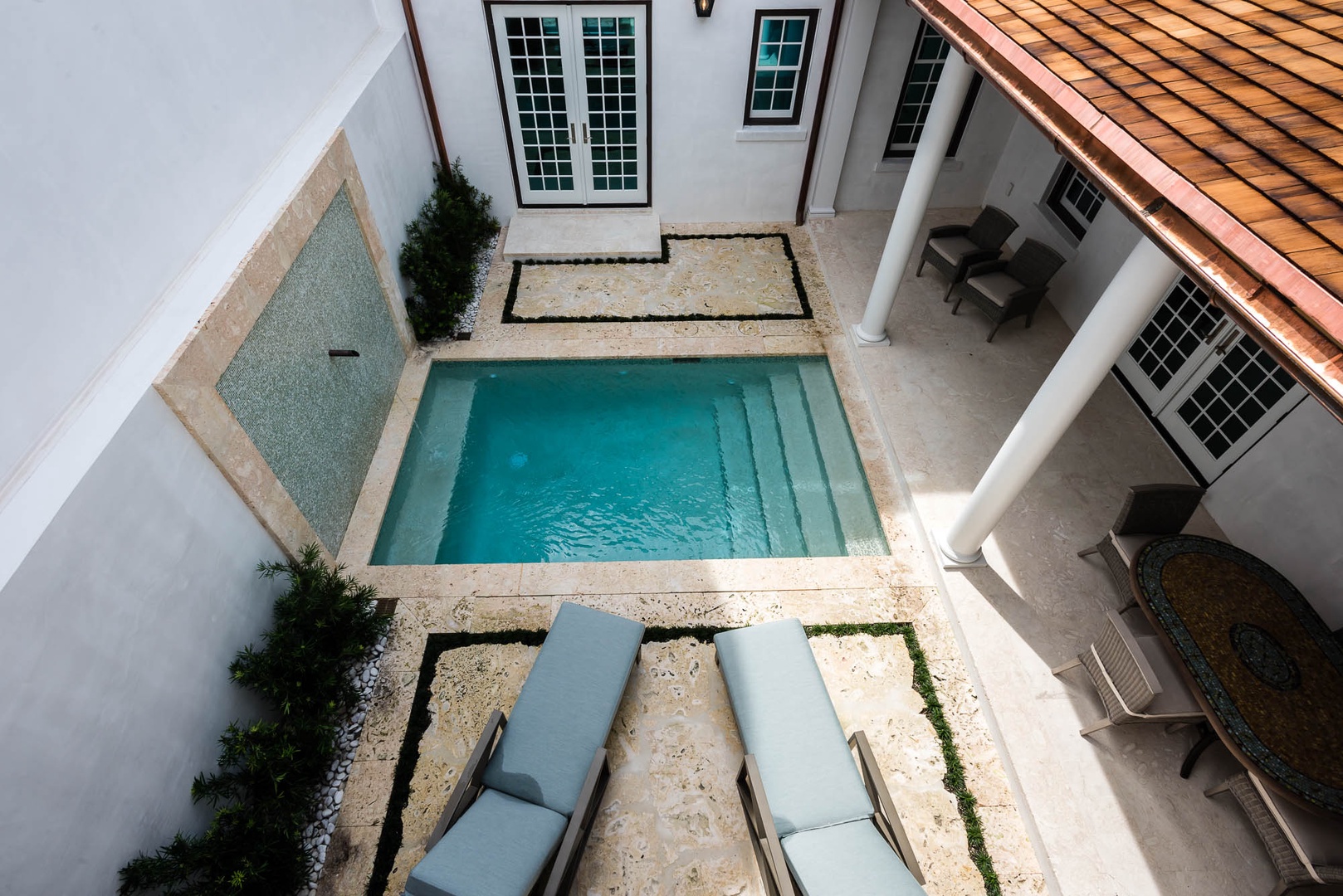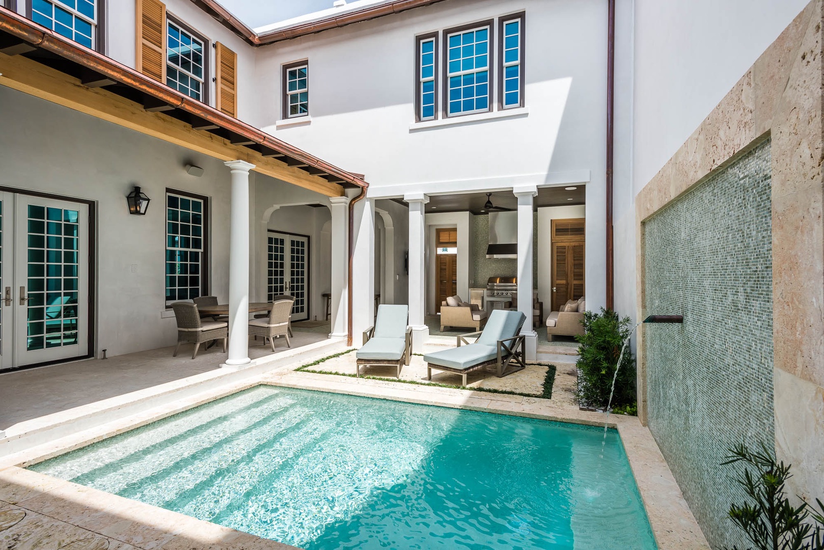 The spacious home features 4 bedrooms, 4 full baths, and 2 half baths with a large open Living/Dining room and fireplace. The first level offers a bedroom with private bath and provides access to the home’s gracious Courtyard and covered Loggia that features a Pool and summer kitchen. The first floor also offers a bonus sleeping room with 3 twin beds. The second level primary suite features a walk-in closet and large primary bath with separate soaking tub and walk-in shower. The additional 2nd level Guest Bedrooms overlook the Courtyard and Pool below. A Flex room on the second floor provides an additional TV viewing area. Parking for this home is located in a two-car garage.