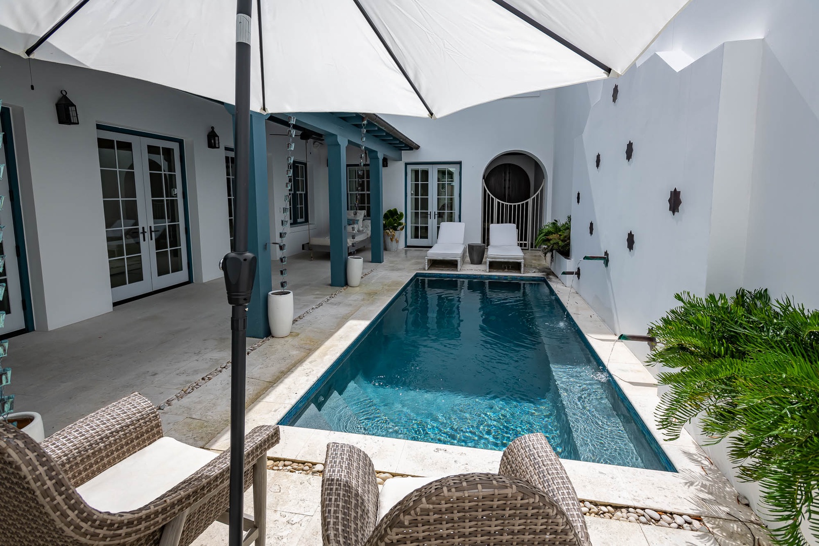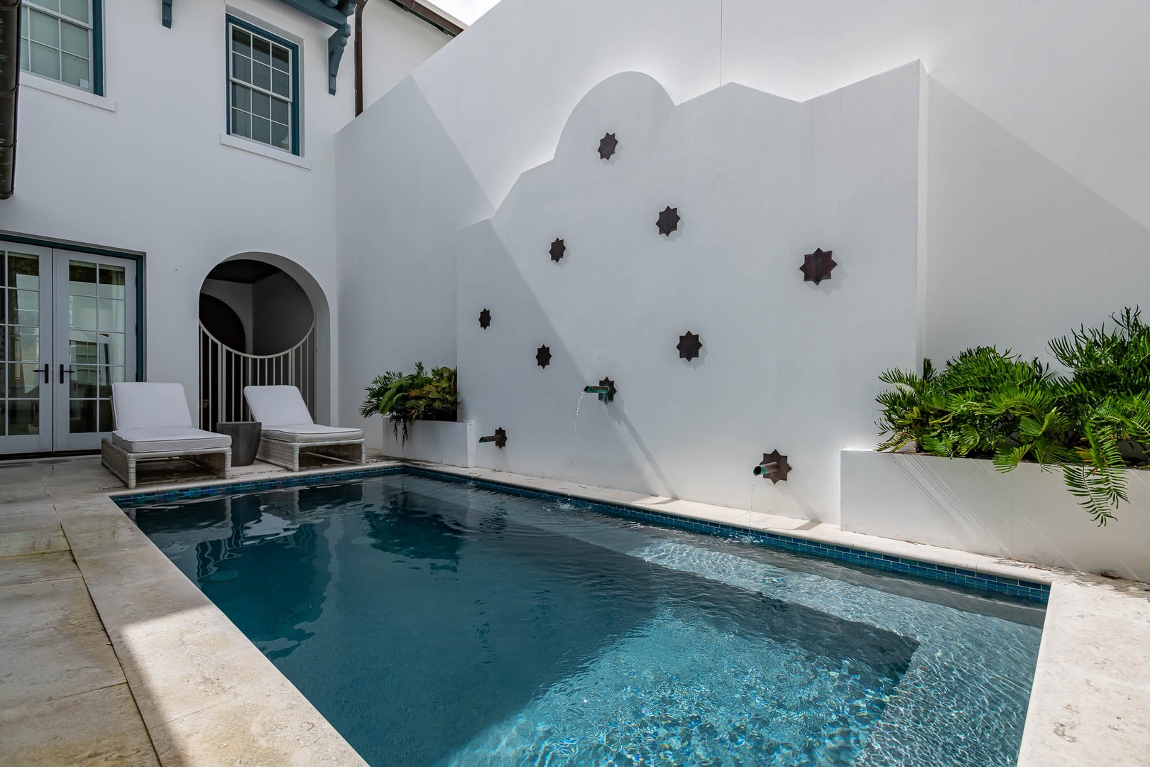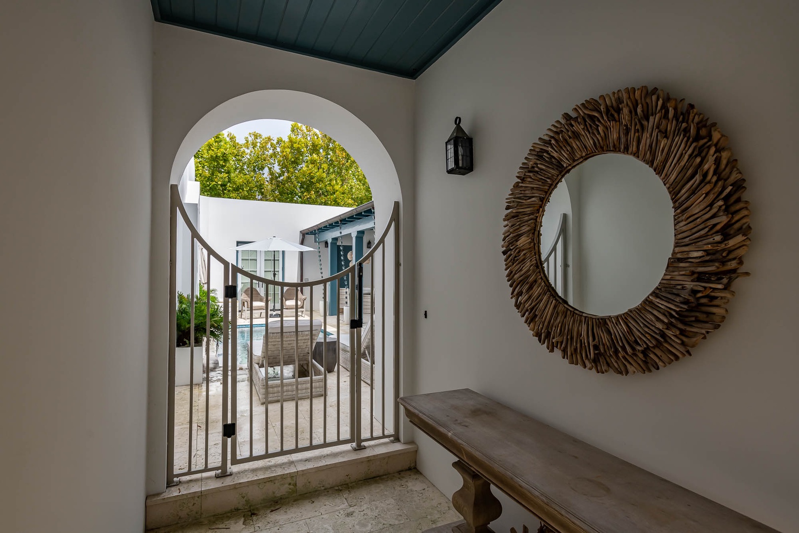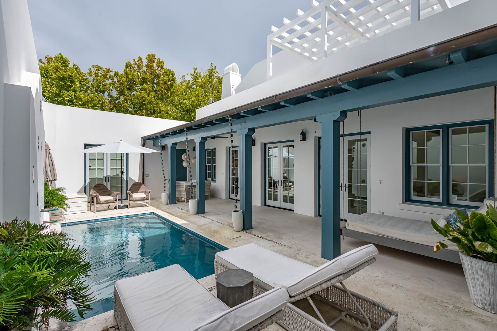This renovated 3 bedroom, 3.5 bath Alys Beach home fronts the Sea Garden Pedestrian Path leading to the beach to the south and fire pit to the north. The spacious courtyard includes a beautiful new pool, outdoor dining area and porch swing that make it a perfect space for family gatherings. The first floor includes the en suite primary bedroom, open kitchen and living areas. The second floor includes the guest king bedroom and bath, as well as a roof-top terrace and summer kitchen perfect for a relaxing evening under the stars.