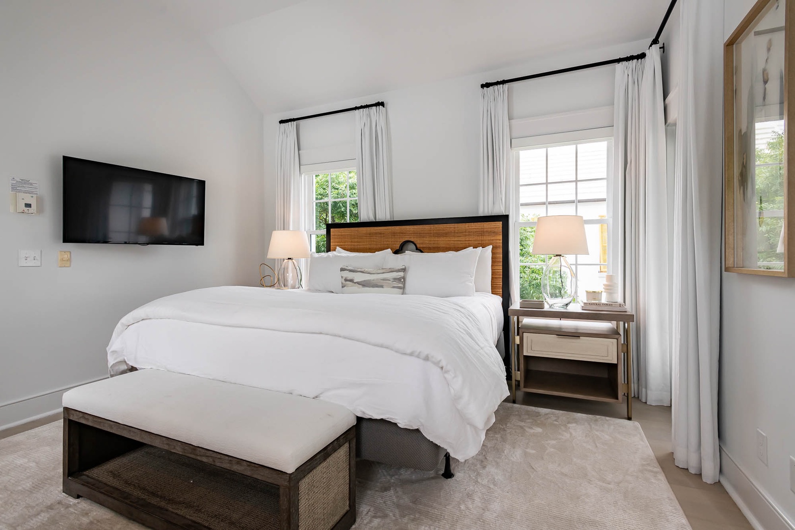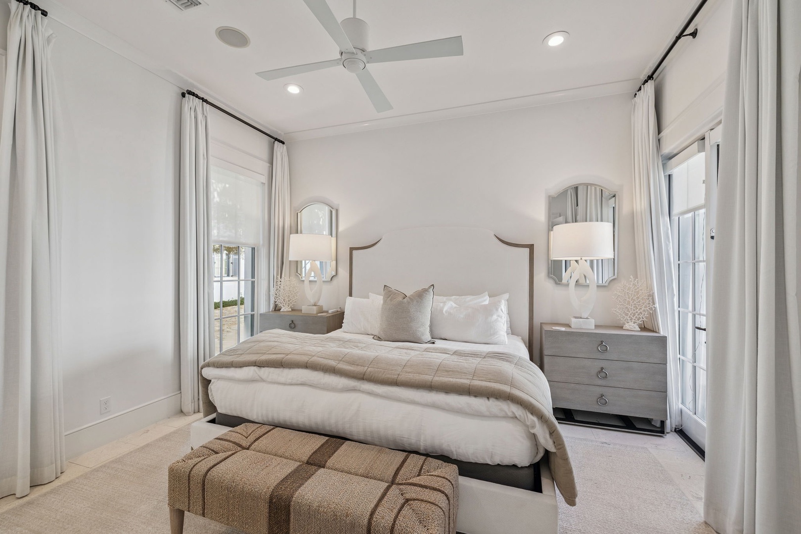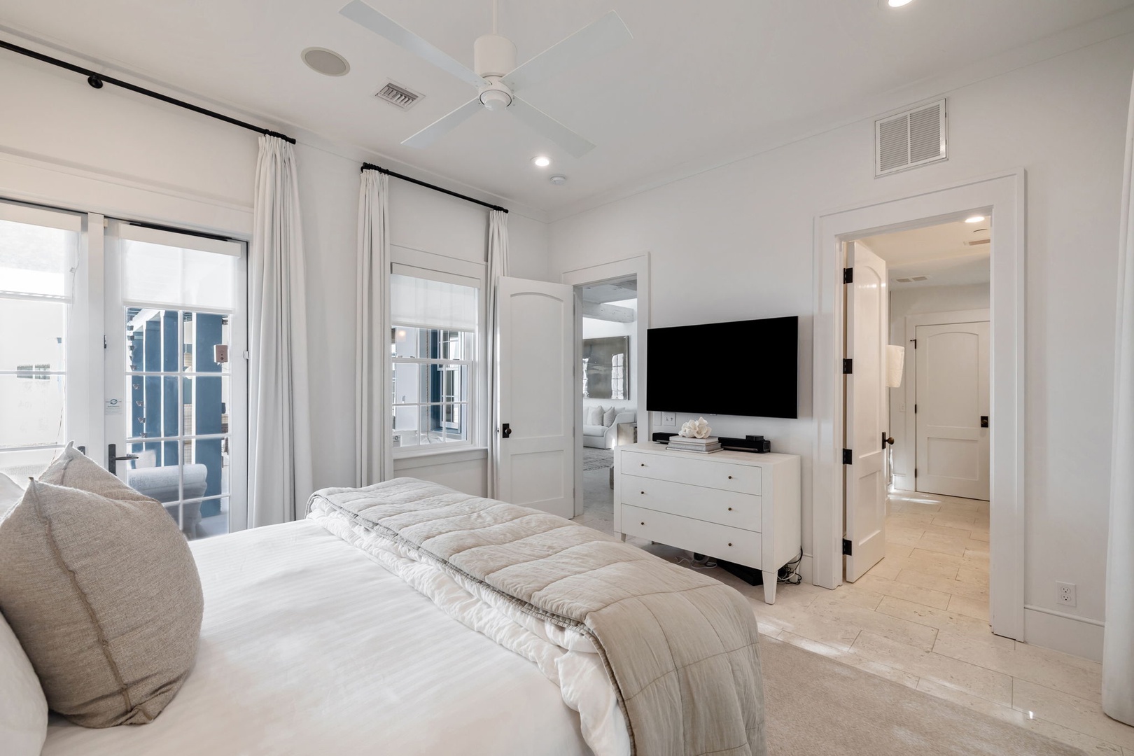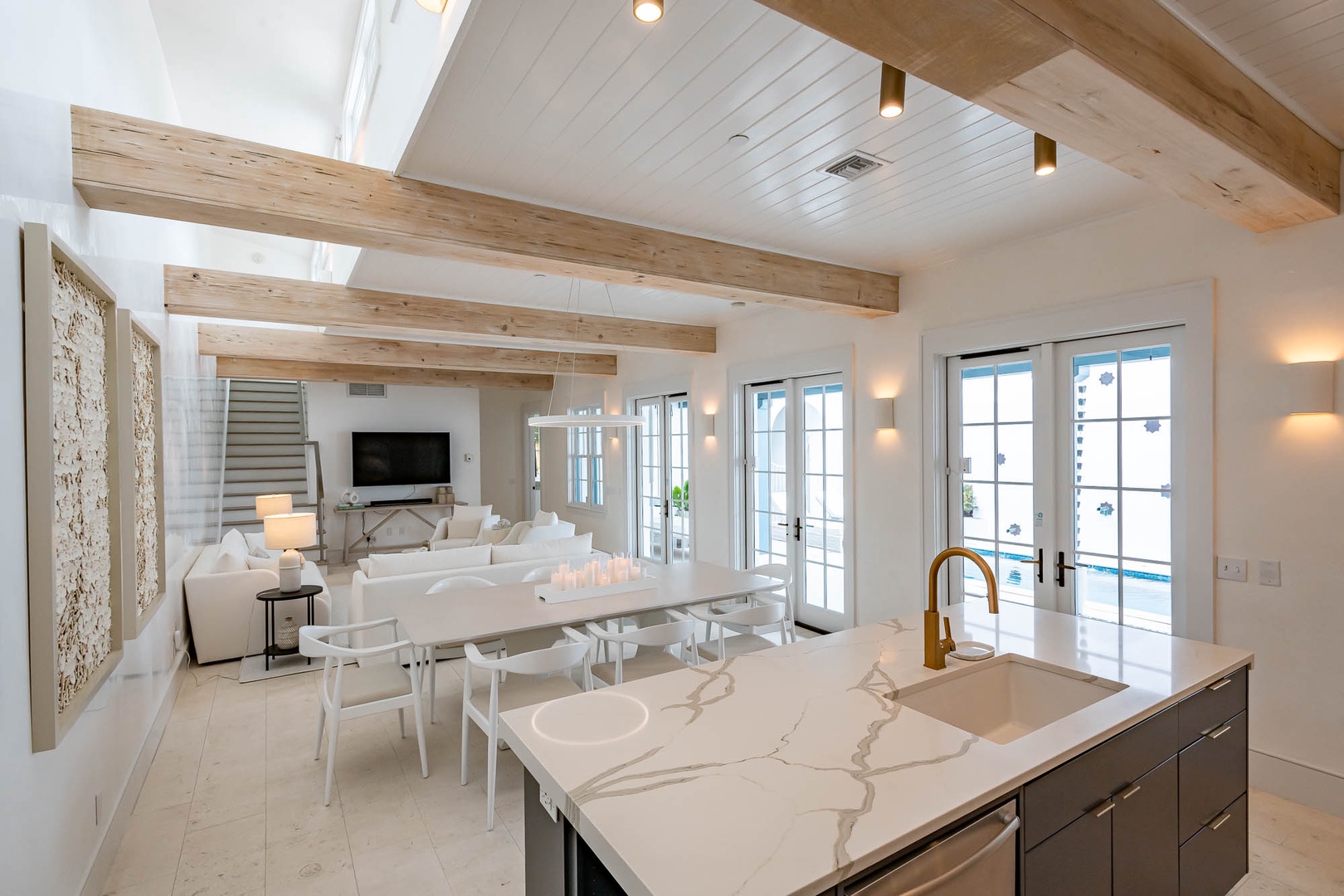 This renovated 3 bedroom, 3.5 bath Alys Beach home fronts the Sea Garden Pedestrian Path leading to the beach to the south and fire pit to the north. The spacious courtyard includes a beautiful new pool, outdoor dining area and porch swing that make it a perfect space for family gatherings. The first floor includes the en suite primary bedroom, open kitchen and living areas. The second floor includes the guest king bedroom and bath, as well as a roof-top terrace and summer kitchen perfect for a relaxing evening under the stars.