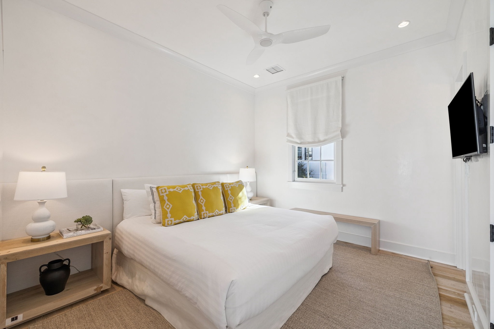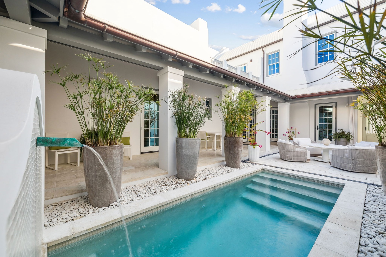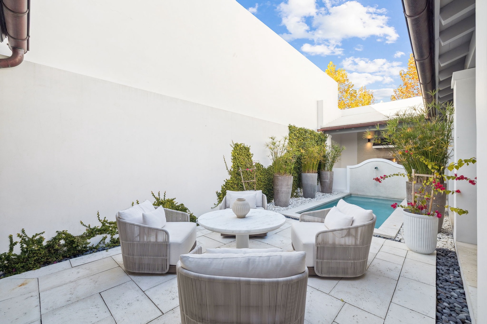 Experience Alys Beach in style on your next vacation in this three-bedroom, three and a half -bathroom courtyard home. You will enjoy features such as a first-floor primary suite with a luxurious ensuite bath. The private courtyard features a pool, built-in grill, covered deck and open patio for relaxing in the sun. Walking into the home, you find a fully-equipped kitchen and cozy dining room that leads to the living room, with a gas fireplace for those cooler evenings. The second floor offers two guest bedrooms with King-sized beds and private baths. Located steps away from Raw and Juicy restaurant, a short walk to the beautiful Caliza Pool complex, North Charles Street leading directly to the beach, you’ll have everything at your fingertips. Parking is located in a courtyard at the rear of home with two designated spaces.
