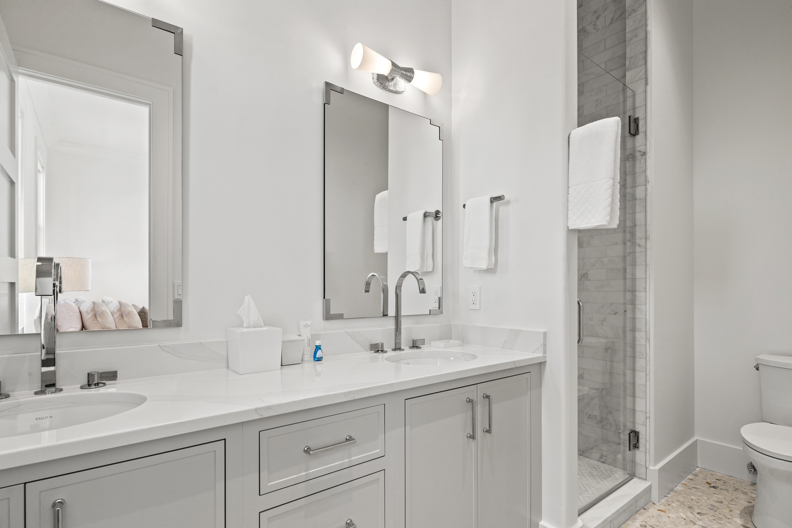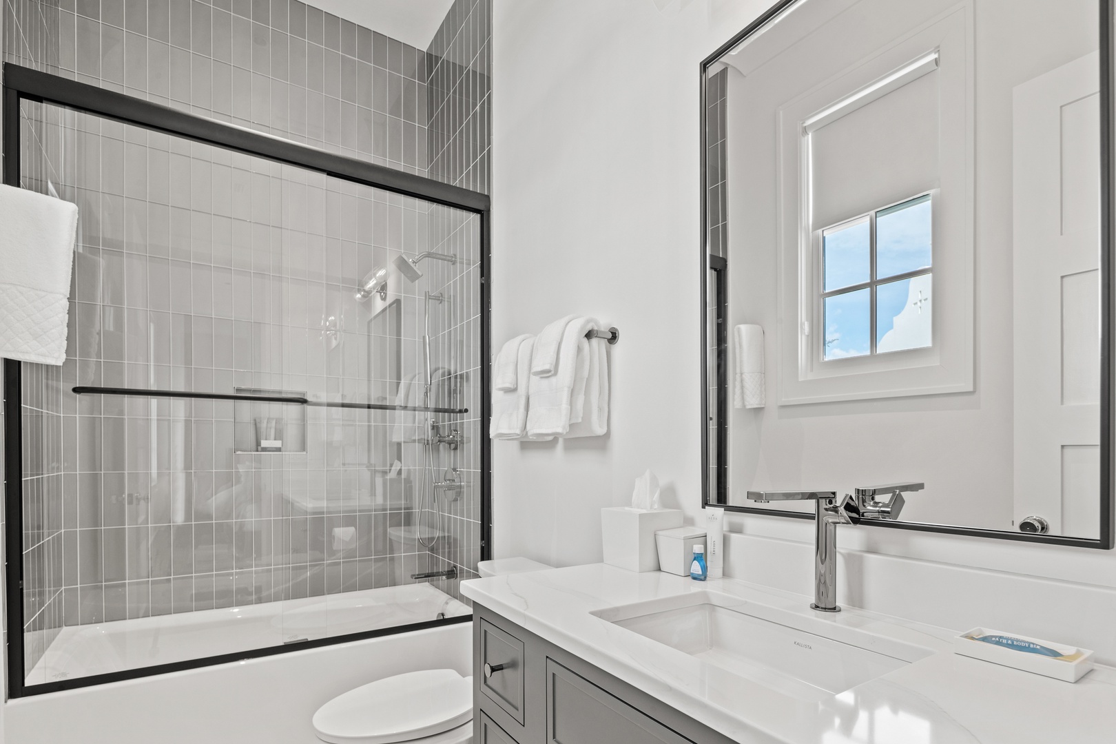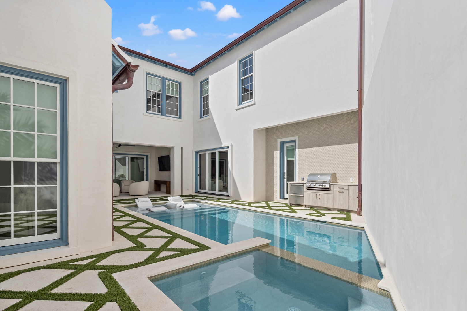 This beautiful, new home on the North Turtle Bale Pedestrian path is perfectly positioned between the Caliza pool complex and the new Silva pool complex opening Spring 2026. This vacation rental offers a first-floor primary bedroom with a spacious bath featuring a large soaking tub and walk-in shower. The remainder of the first floor includes a large great room with plenty of counter space in the kitchen, a dining area, and living room. On the second floor, you will find a bedroom with two twin beds and a private bath. Two additional bedrooms, each with one king-sized bed also feature private baths. The spacious courtyard has both covered and uncovered space. The covered space offers lounging with a TV, while the uncovered space has plenty of room to lay out and relax in the sun (Additional furniture to be added by July 2025*). There is a grill just off of the large pool that includes a section with jets. This home offers 2 single-car garages for parking.