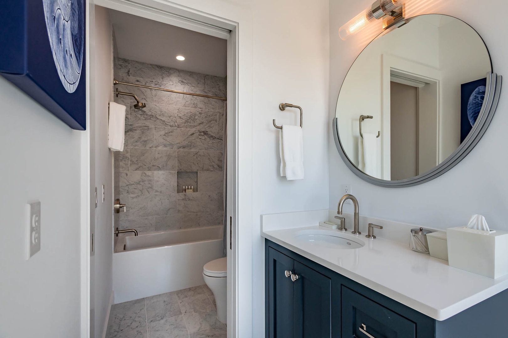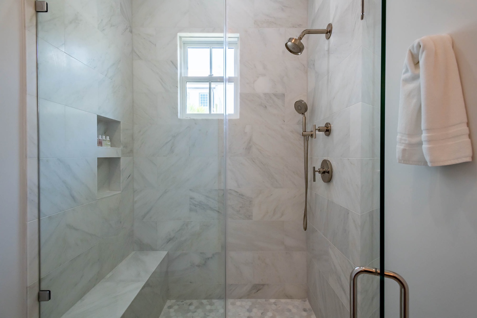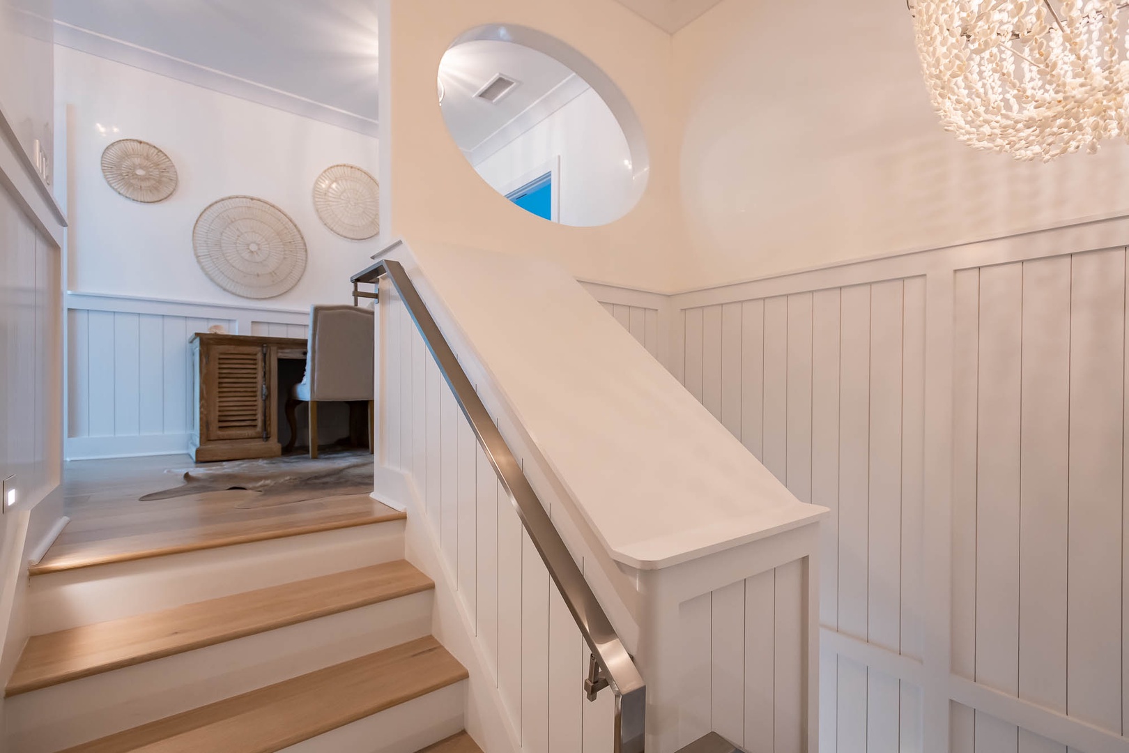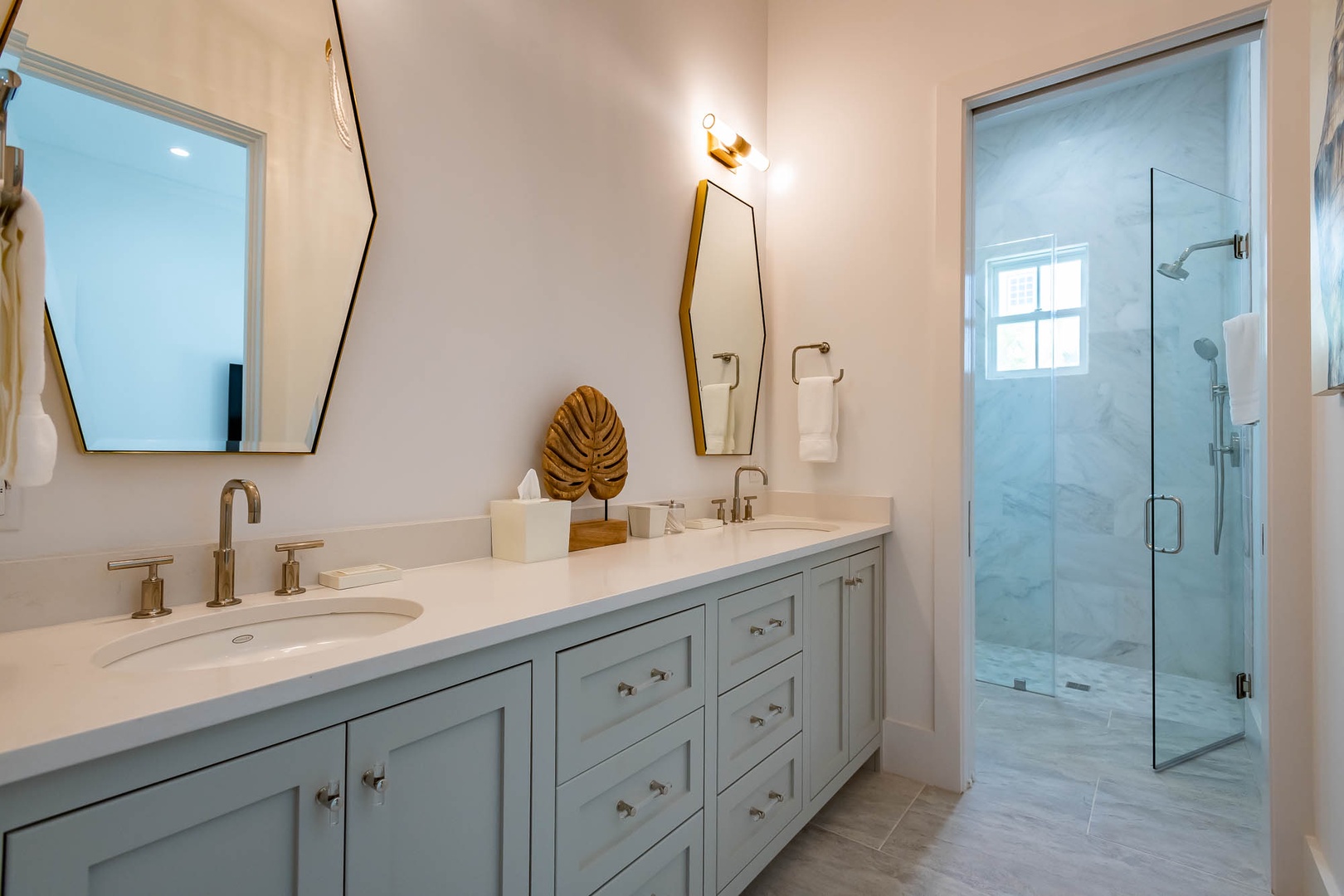 This beautiful vacation rental home offers a perfect stay at Alys Beach. Located on the beautiful Turtle Bale pedestrian path, the Gulf is only a short distance away. The first level of this home offers a private courtyard featuring a built-in grill, heated pool, open seating for enjoying the sun and a covered outdoor dining area. The interior of the first floor features a spacious great room with a gas fireplace, ample seating, dining area and a well-equipped kitchen with a large center island. The laundry area, a half-bath and one bedroom with a king-sized bed and private bath are also on this level. On the second level, guests will find the primary suite with a king-sized bed as well as one more bedroom with one king-sized bed and private bath. Another bedroom with a king-sized bed and a bedroom with four bunk beds (two upper, two lower) share a full bath and complete the second level. Parking for this home is located in two designated spaces in a parking court.