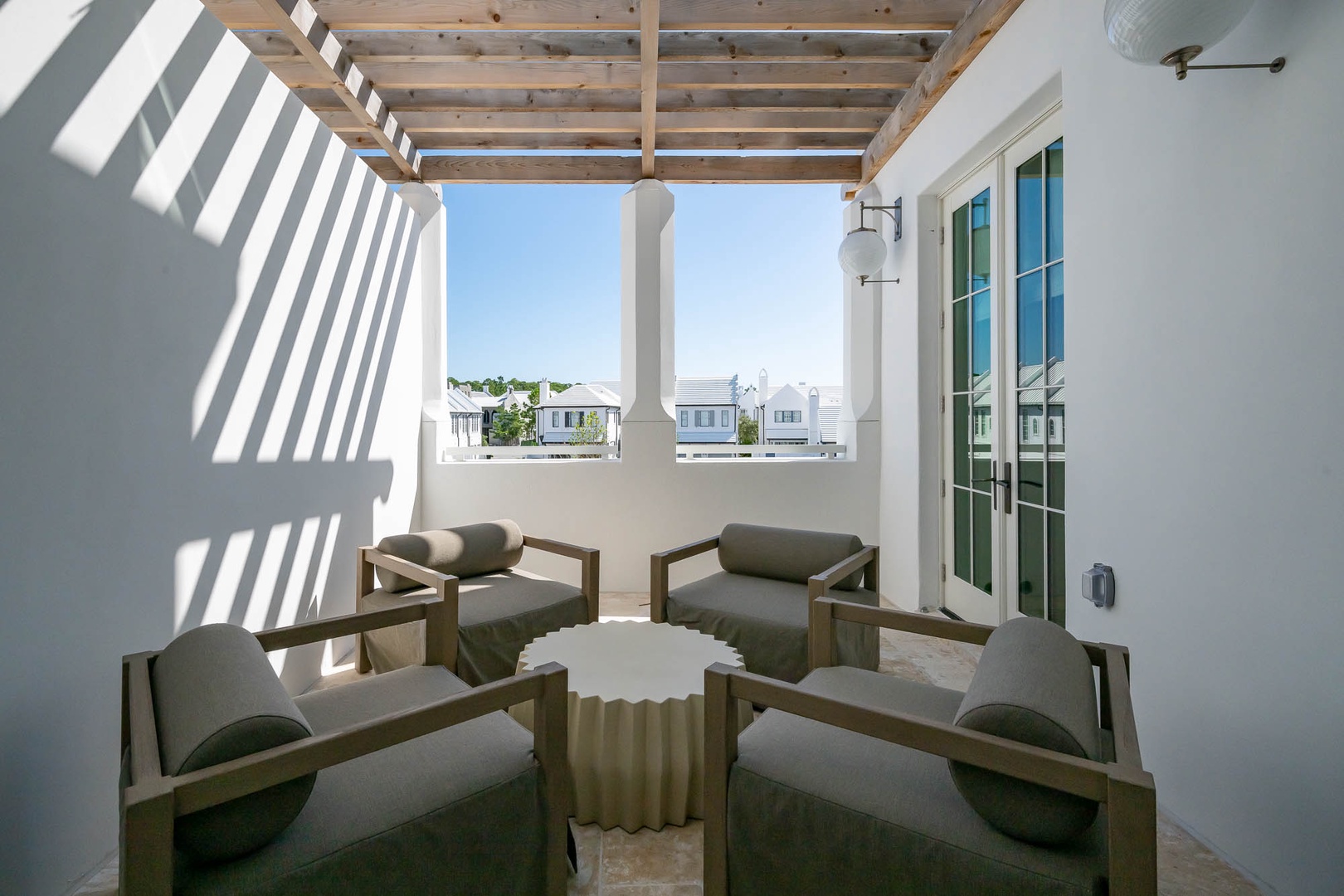 Guests staying in Alys Beach vacation rental properties enjoy personalized concierge services, exclusive access to the Caliza Pool and Restaurant, ZUMA Wellness Center and Café, advance access to purchase tickets to many of our signature events, a stunning new racquet sports venue, and private beach access. Each property includes Wifi, cable TV, YOLO coffee, kitchen supplies and 24-hour security included with the Resort Fee. An interactive vacation rental guest portal will be available to you and your guests to further help you plan your best vacation experience at Alys Beach. Beach chair set ups, beach food and beverage delivery, bicycle rentals, water sports equipment, private signature experiences and family portrait photography sessions (through our Preferred Photographer program) are also available at additional costs – our concierge will be happy to make recommendations.