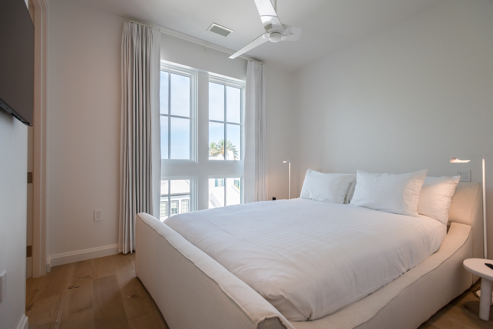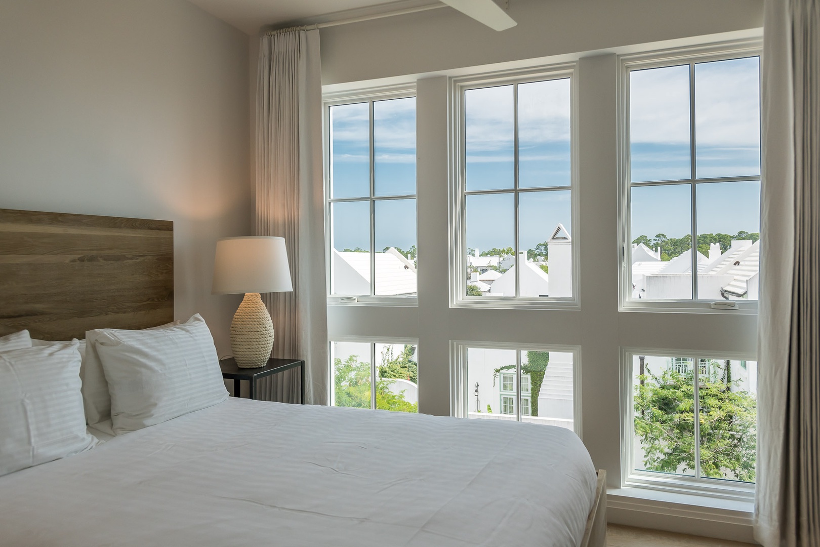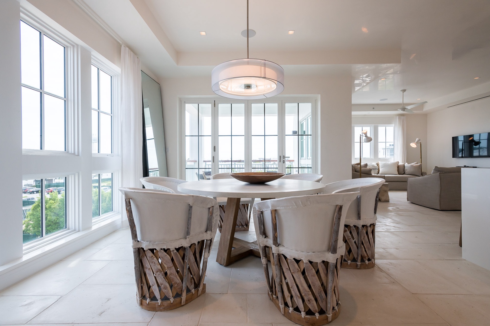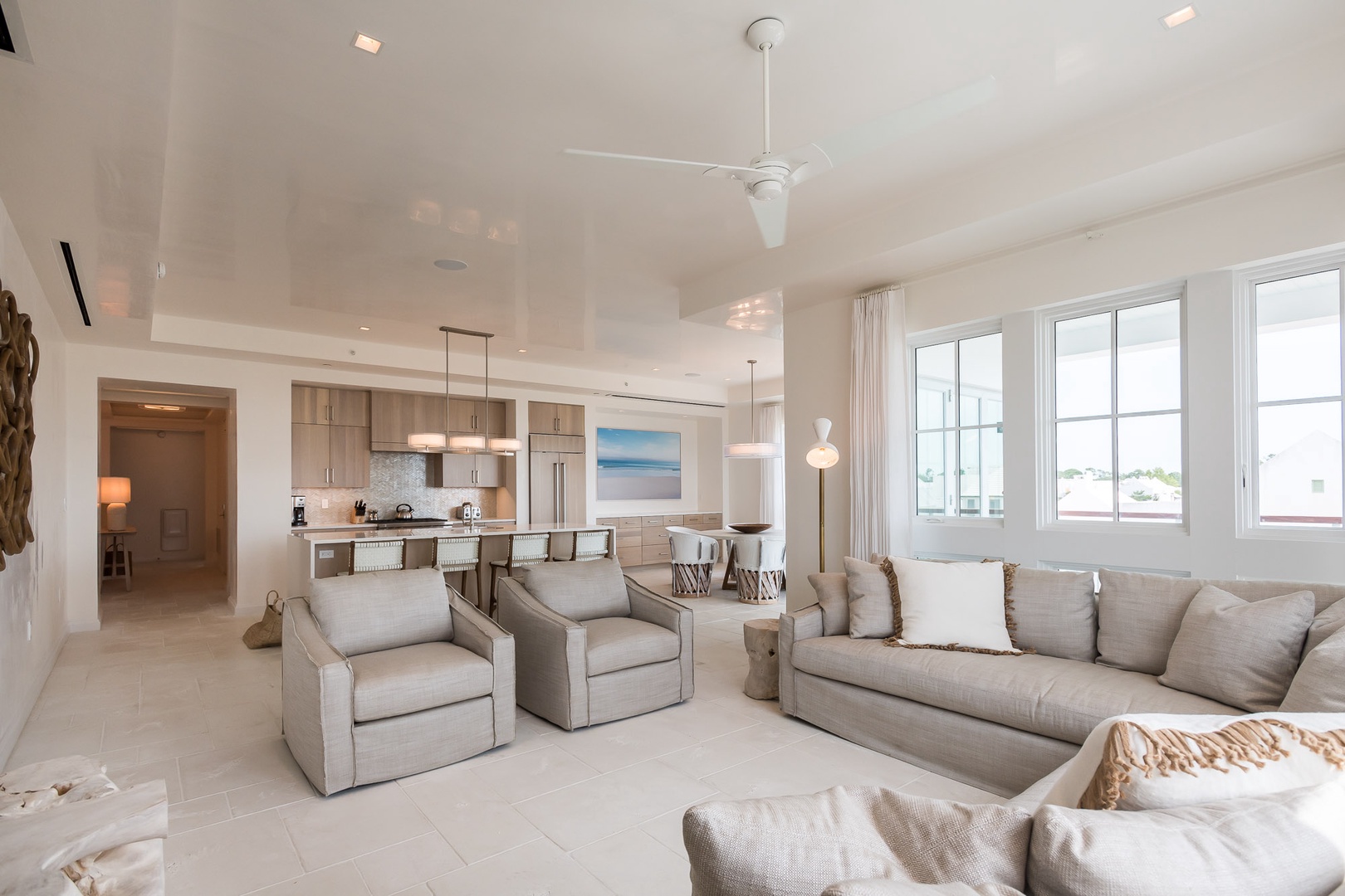 This beautiful 3-bedroom vacation rental is inside the newest building at Alys Beach and is the perfect location to enjoy all town amenities. Located on the third floor of the Whitby building, this condo offers three bedrooms and three full baths. The open-concept great room offers plenty of natural light and combines a galley-style kitchen with center island, the dining area seating six and the family room offering ample seating. A spacious balcony overlooks the Town Center and the Amphitheatre. The primary suite offers a king-sized bed and private bath. The second and third bedrooms each offer a queen-sized bed. Parking for this condo consist of one designated space in a parking court behind The Whitby.