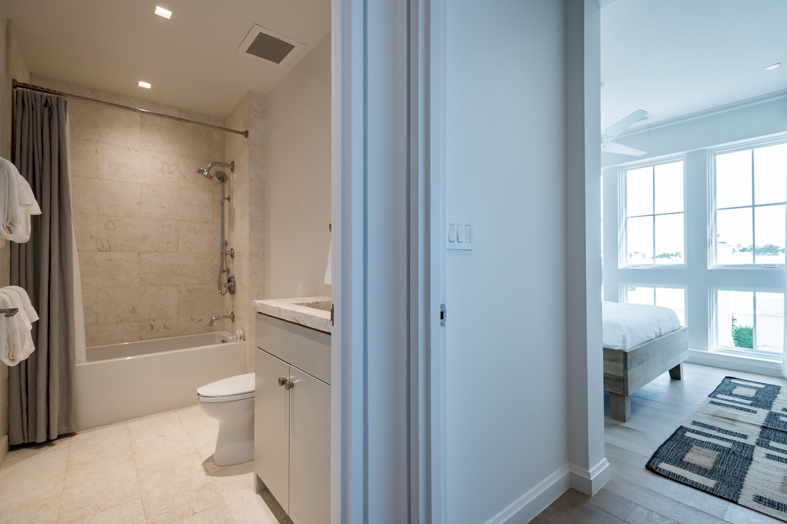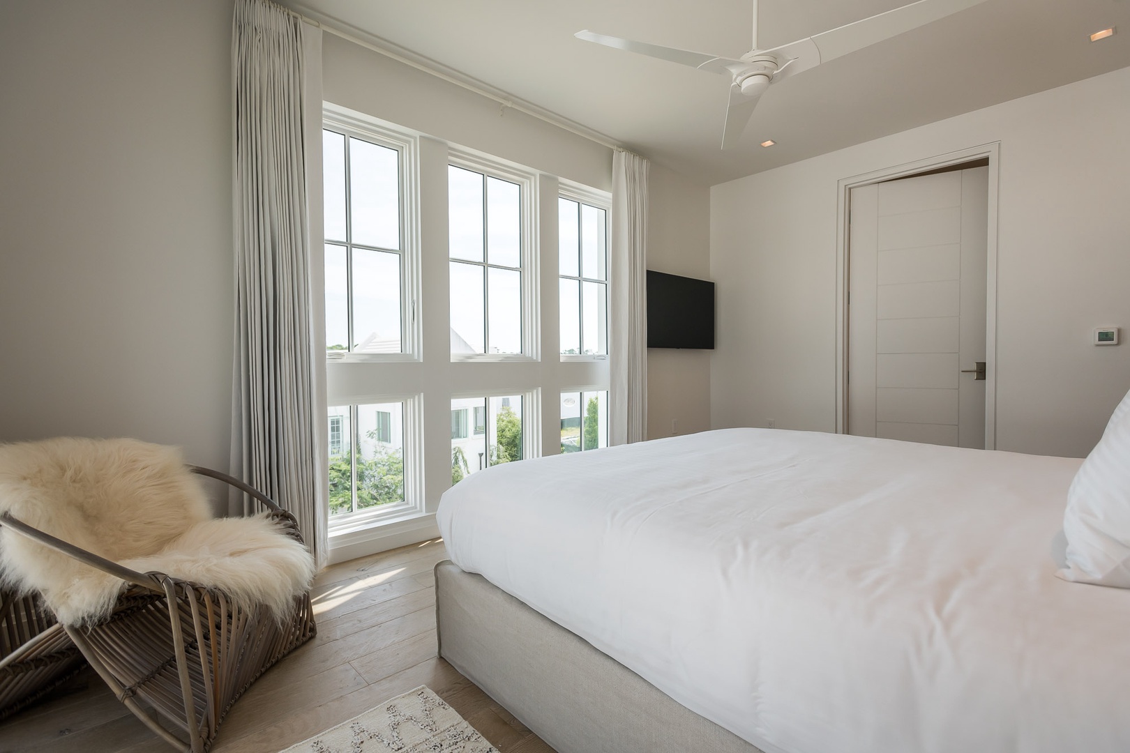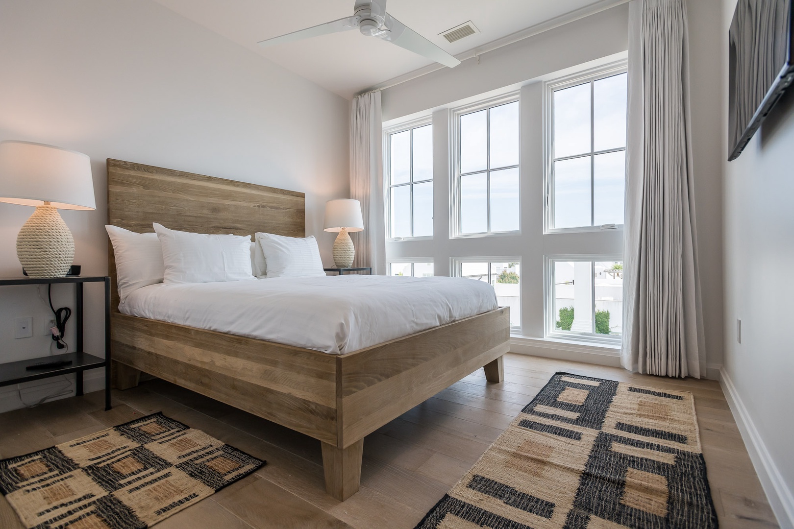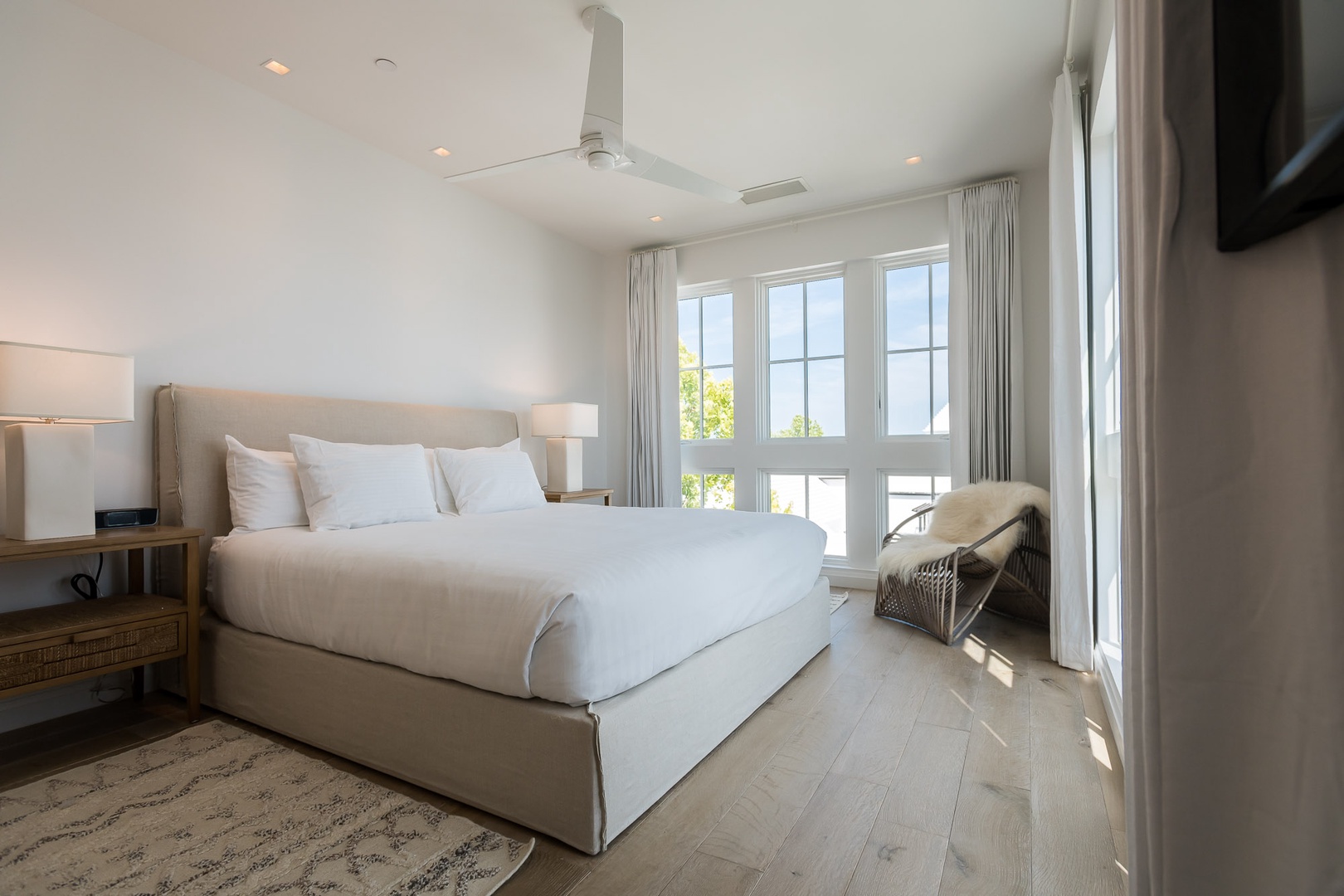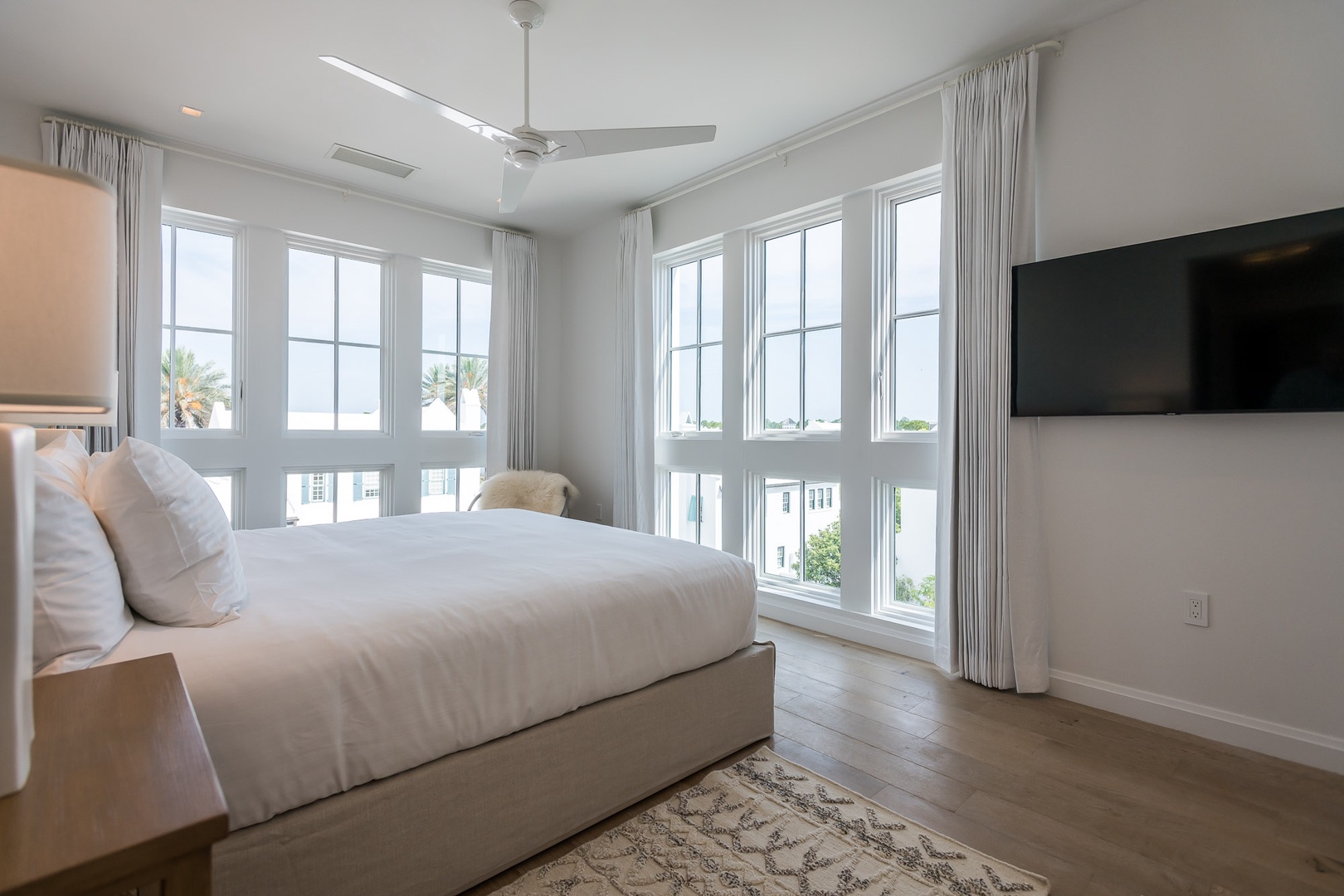 This beautiful 3-bedroom vacation rental is inside the newest building at Alys Beach and is the perfect location to enjoy all town amenities. Located on the third floor of the Whitby building, this condo offers three bedrooms and three full baths. The open-concept great room offers plenty of natural light and combines a galley-style kitchen with center island, the dining area seating six and the family room offering ample seating. A spacious balcony overlooks the Town Center and the Amphitheatre. The primary suite offers a king-sized bed and private bath. The second and third bedrooms each offer a queen-sized bed. Parking for this condo consist of one designated space in a parking court behind The Whitby.