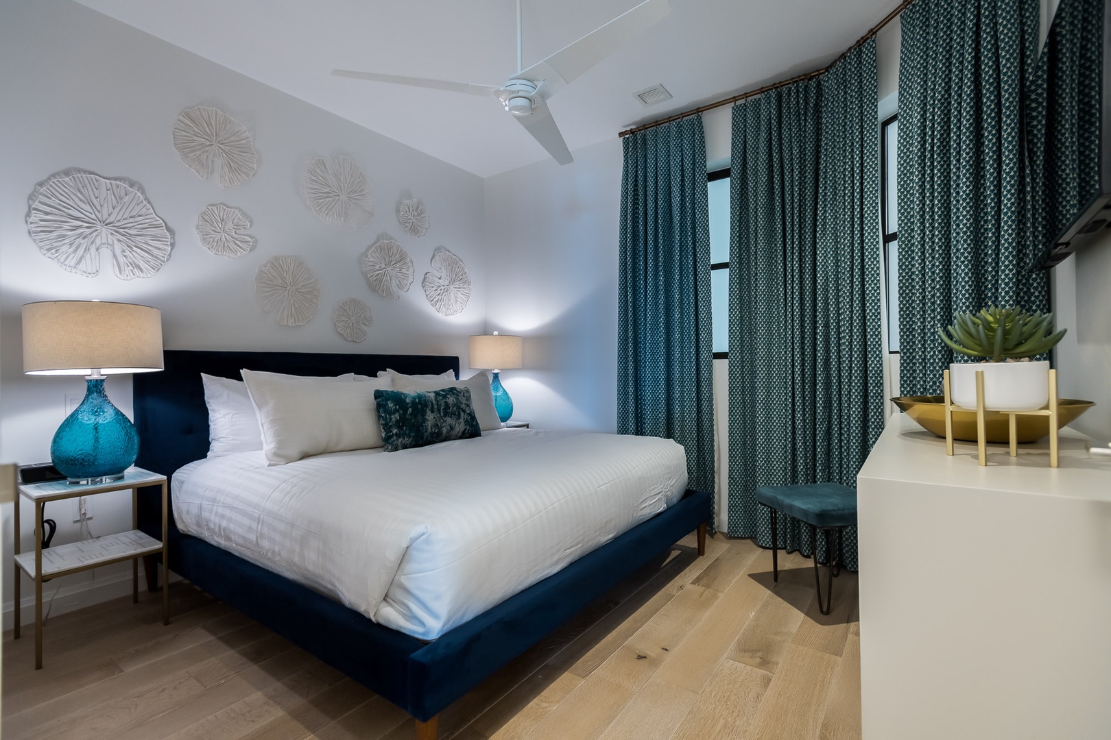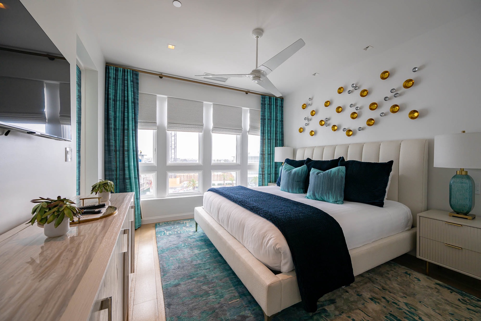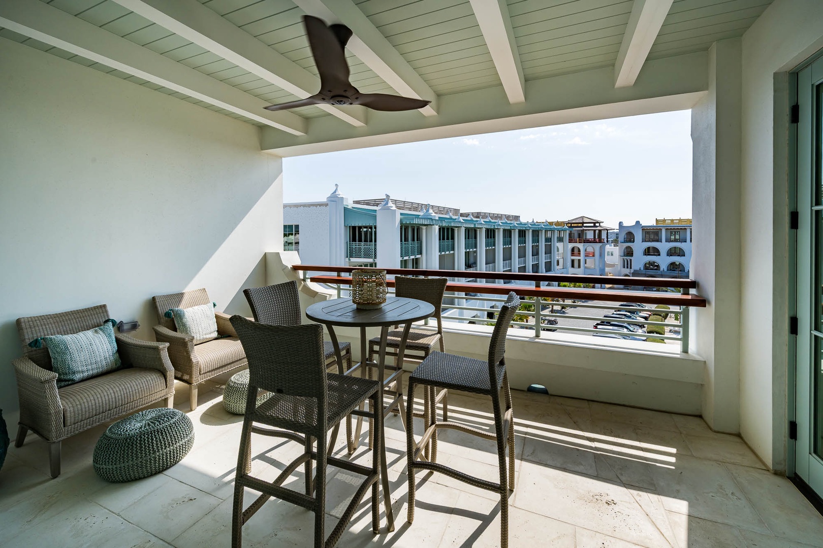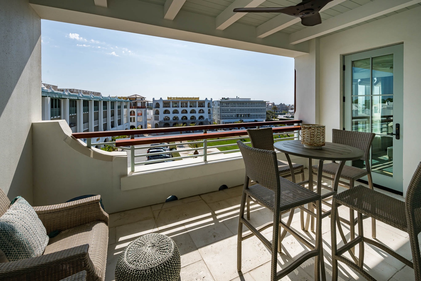 This lovely new vacation rental is located in the newest condominium building at Alys Beach, The Whitby. Located on the 4nd Floor, this condo offers a large balcony with beautiful views overlooking the Amphitheatre and the rooftops of Alys Beach. Guests will love the open kitchen with a large center island and a dining table for six. The family room offers ample seating and plenty of natural light. The primary suite contains a king-sized bed with views looking over the town center. The second bedroom also contains a king-sized bed with adjacent bath. Parking for this condominium is in one designated parking space behind the building.